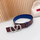 Vlogo Brown Black White Stone Silver Buckle Belt 40mm Chocolate Blue Leather