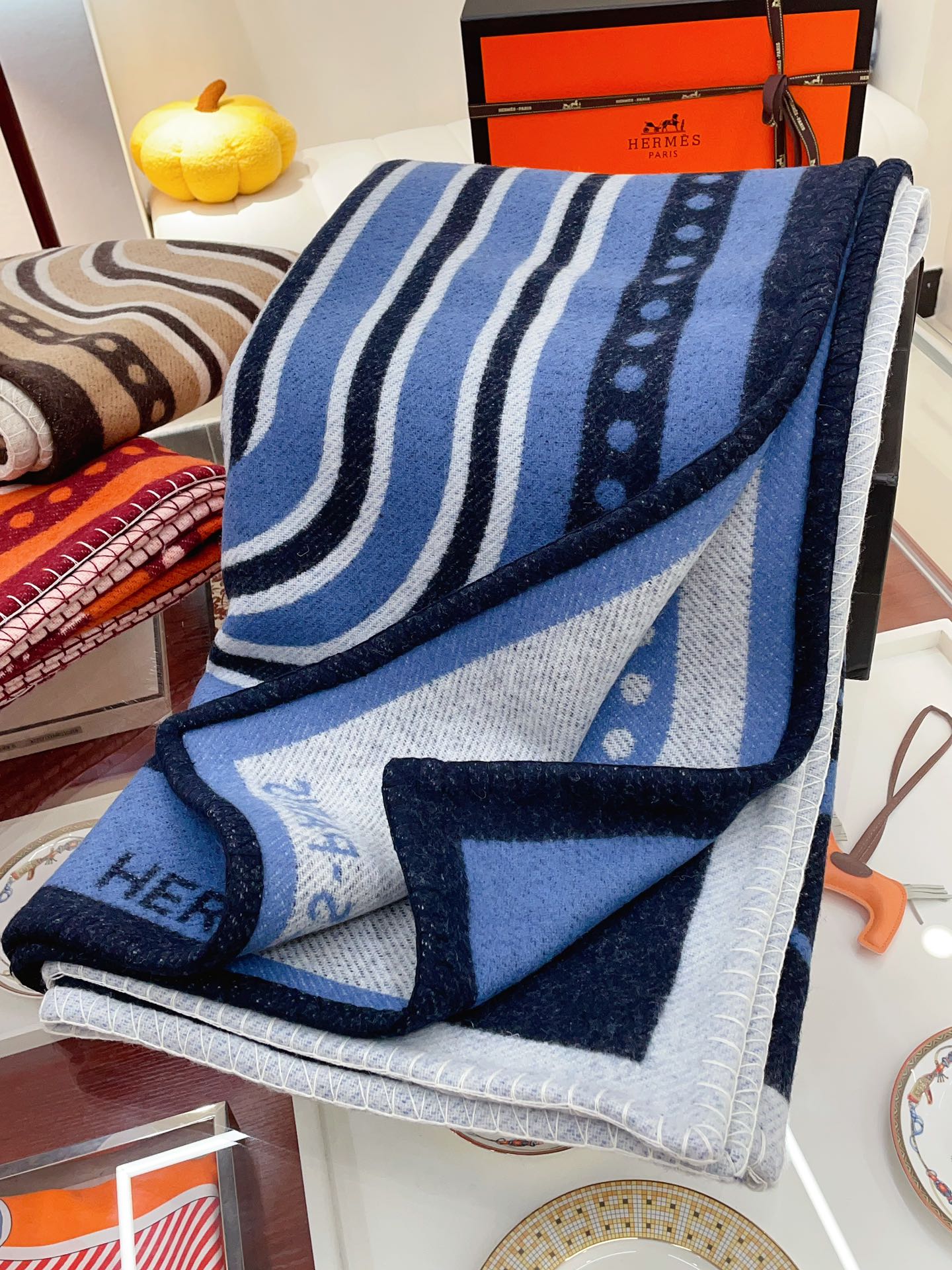 Grand Tralala Blanket Blue Wool Cashmere