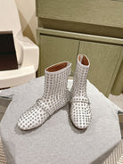 ALAIA SHORT BOOTS IN WHITE LAMBSKIN ATTACH RHINSTONES