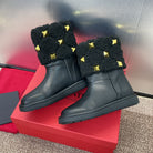 ANKLE STUDDED BOOTS IN BLACK CALFSKIN AND SHEARLING LINING