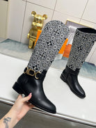 LV Westside Flat High Boot 40mm Black Mix White Monogram Lambskin