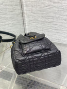 CD Caro Macrocannage Small Bucket Bag Black Lambskin