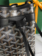 PETIT FLOT BUCKET BAG 22 IN BLACK GOYARDINE CANVAS AND LAMBSKIN TRIM