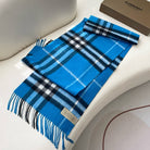 CHECK SCARF 180 CM IN AZURE BLUE MIX BLACK CASHMERE 405481