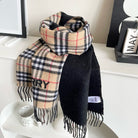 REVERSIBLE CHECK CASHMERE SCARF 180 CM BLACK AND BEIGE 405497