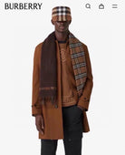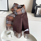 REVERSIBLE CHECK CASHMERE SCARF 180 CM CHOCOLATE BROWN 405498