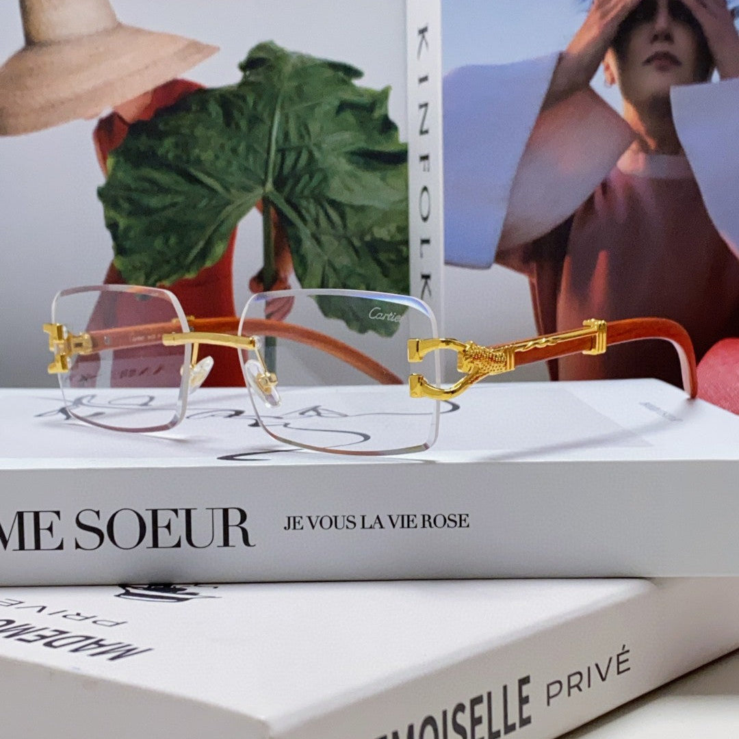 PANTHÈRE RIMLESS TRIANGLE FRAME SUNGLASSES CT0616S IN METAL AND WOODEN