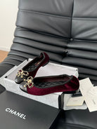 CC Ballet Flats In Burgundy Velvet Fabric 143526