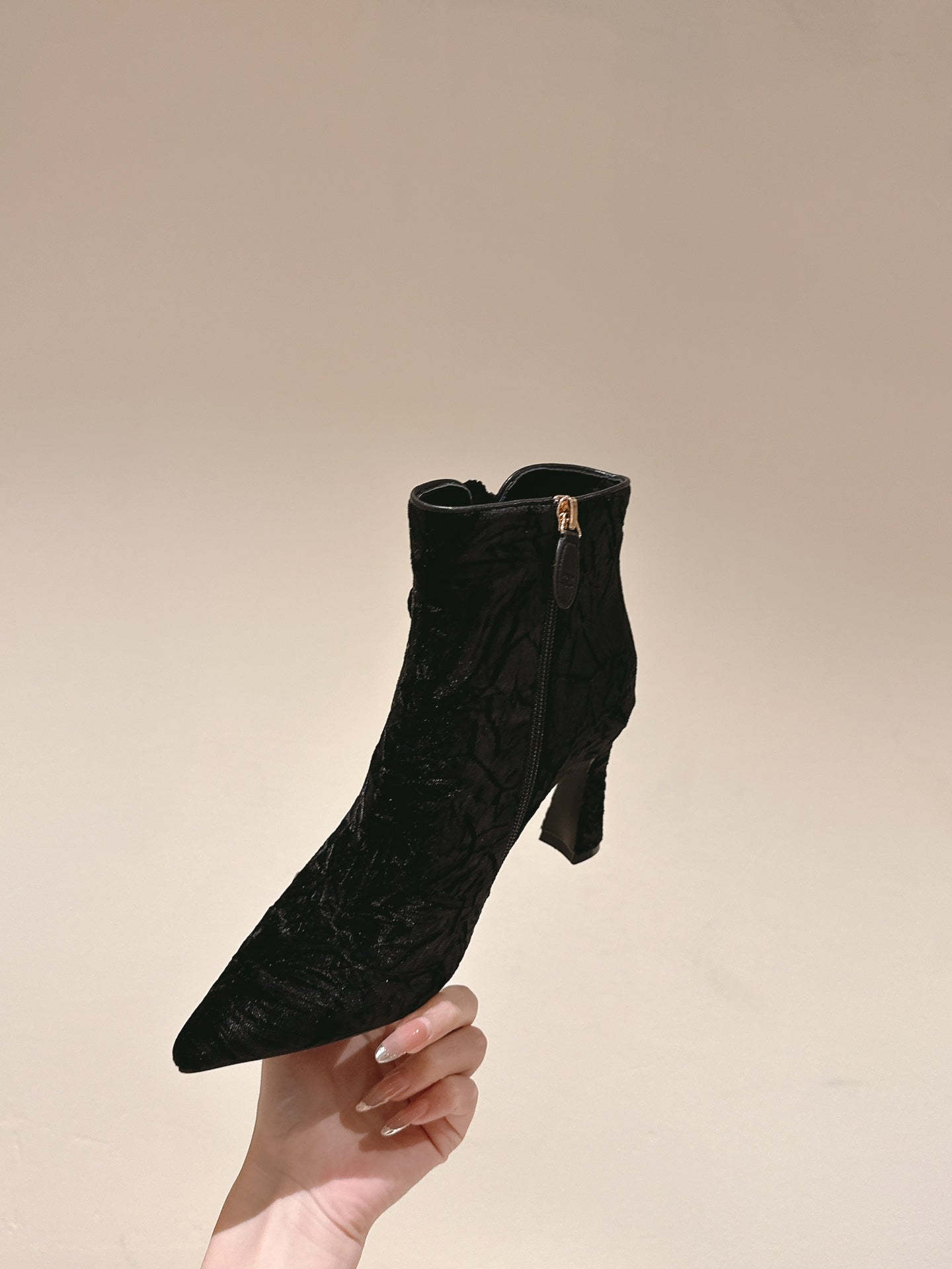 CC Ankle Boots 85mm Black Rough Velvet Fabric