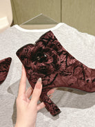 CC Ankle Boots 85mm Brown Red Rough Velvet Fabric