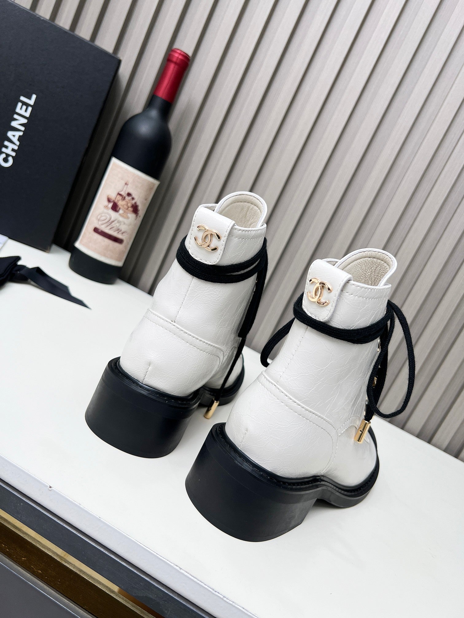 CC Combat Boots 50mm White Black Calfskin And Lycra Fabric 944550