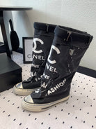 CC High-Top Canvas Boots Black White Denim Fabric 938046