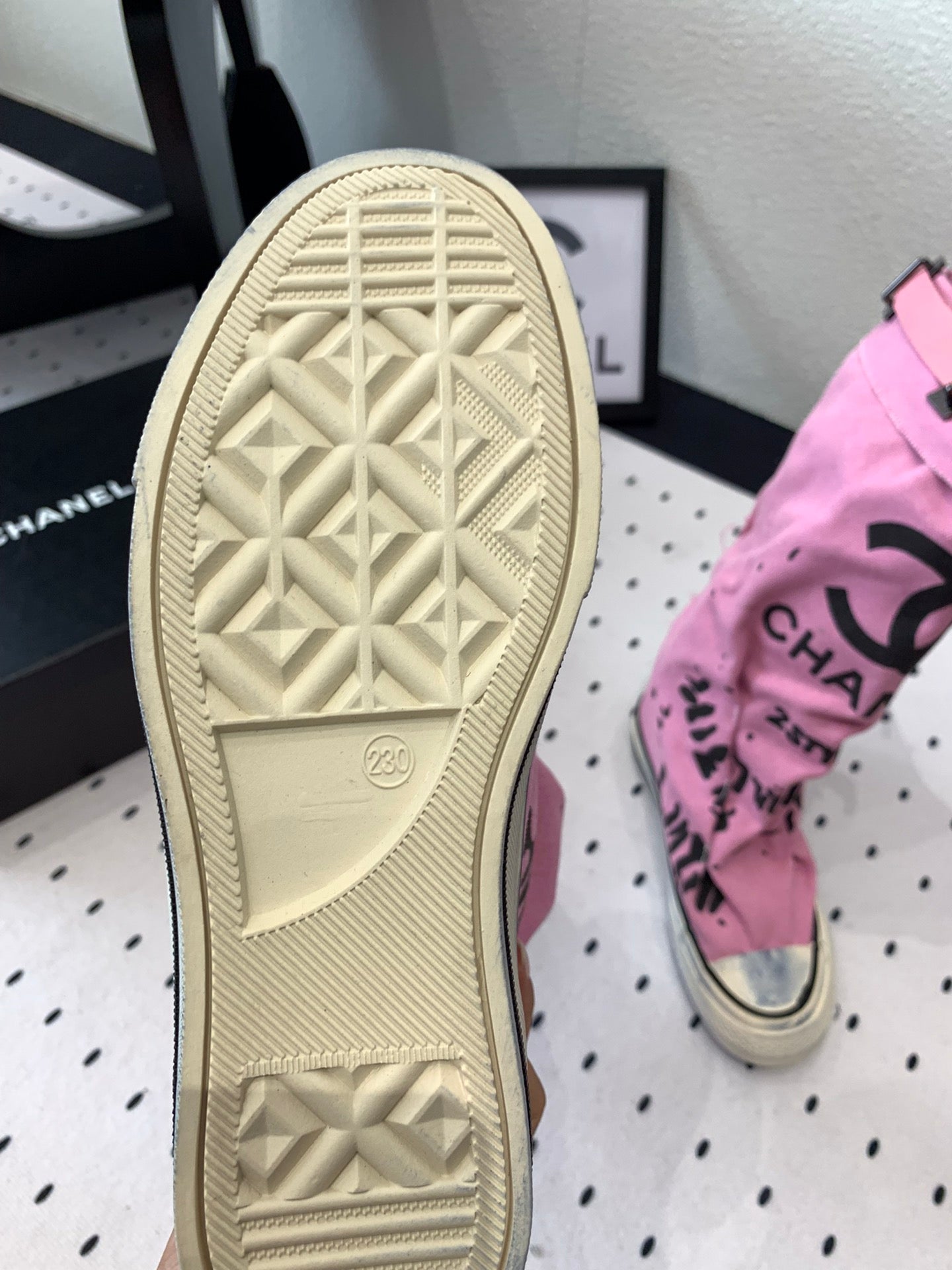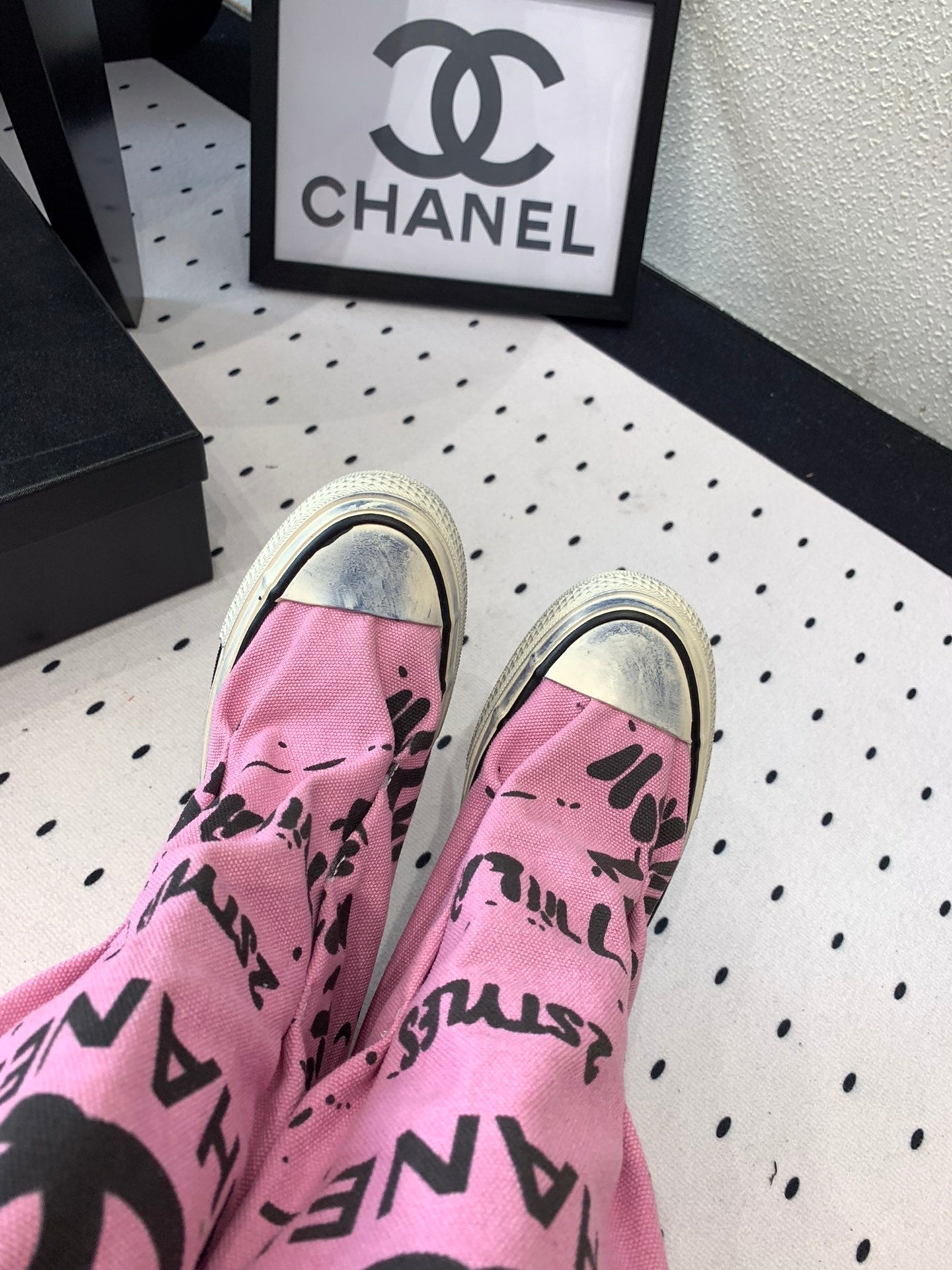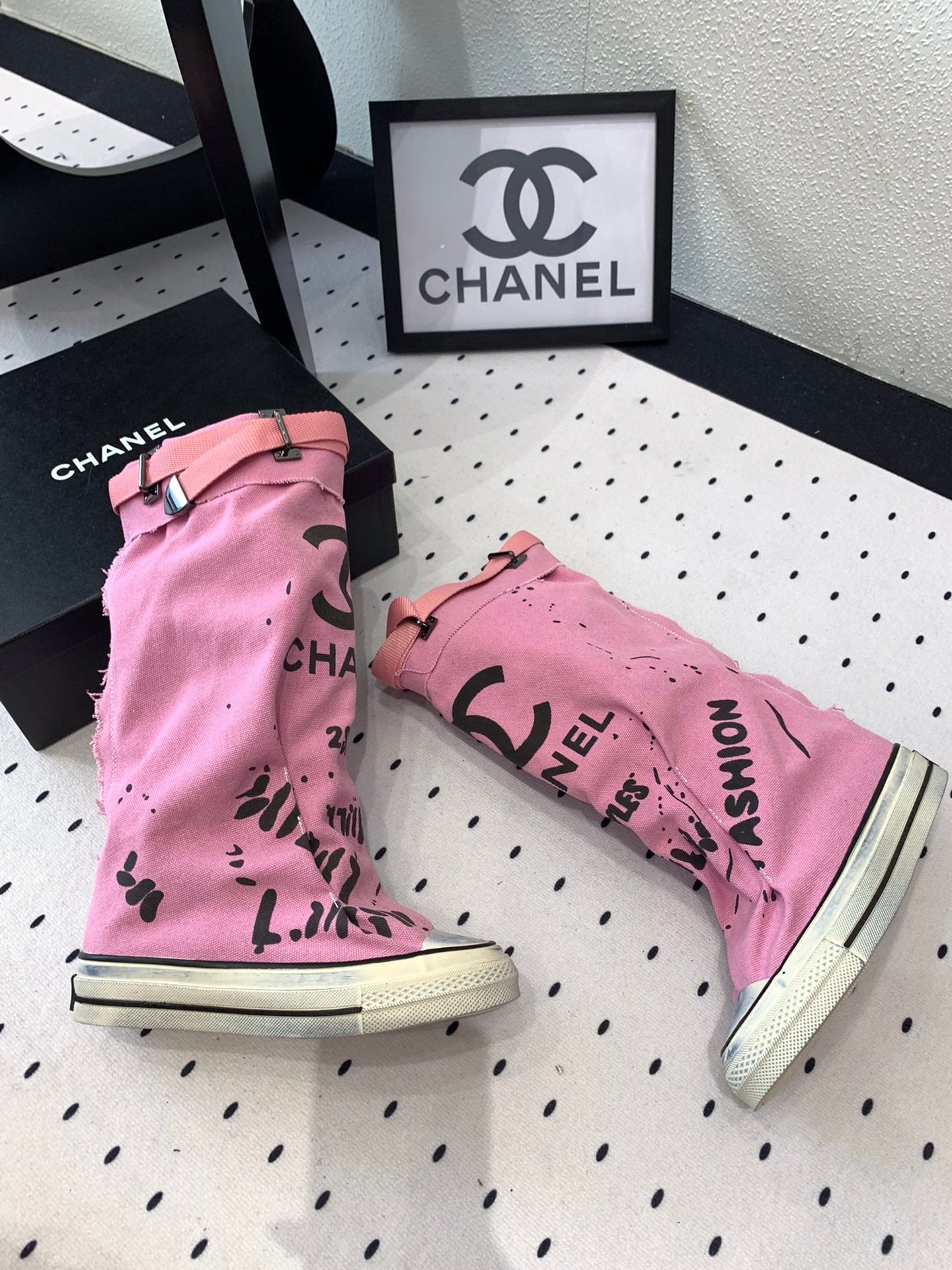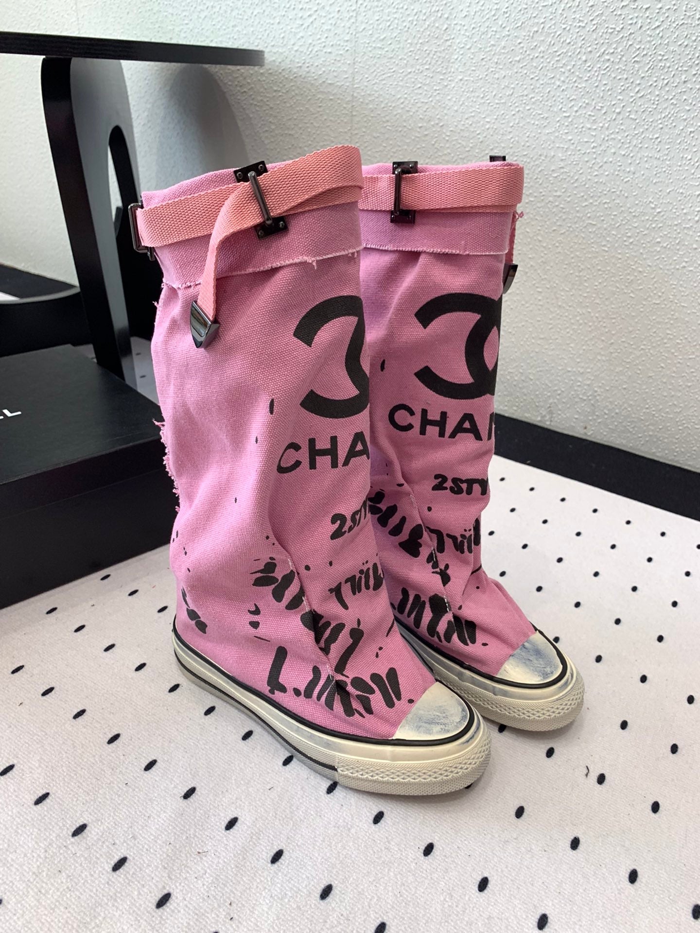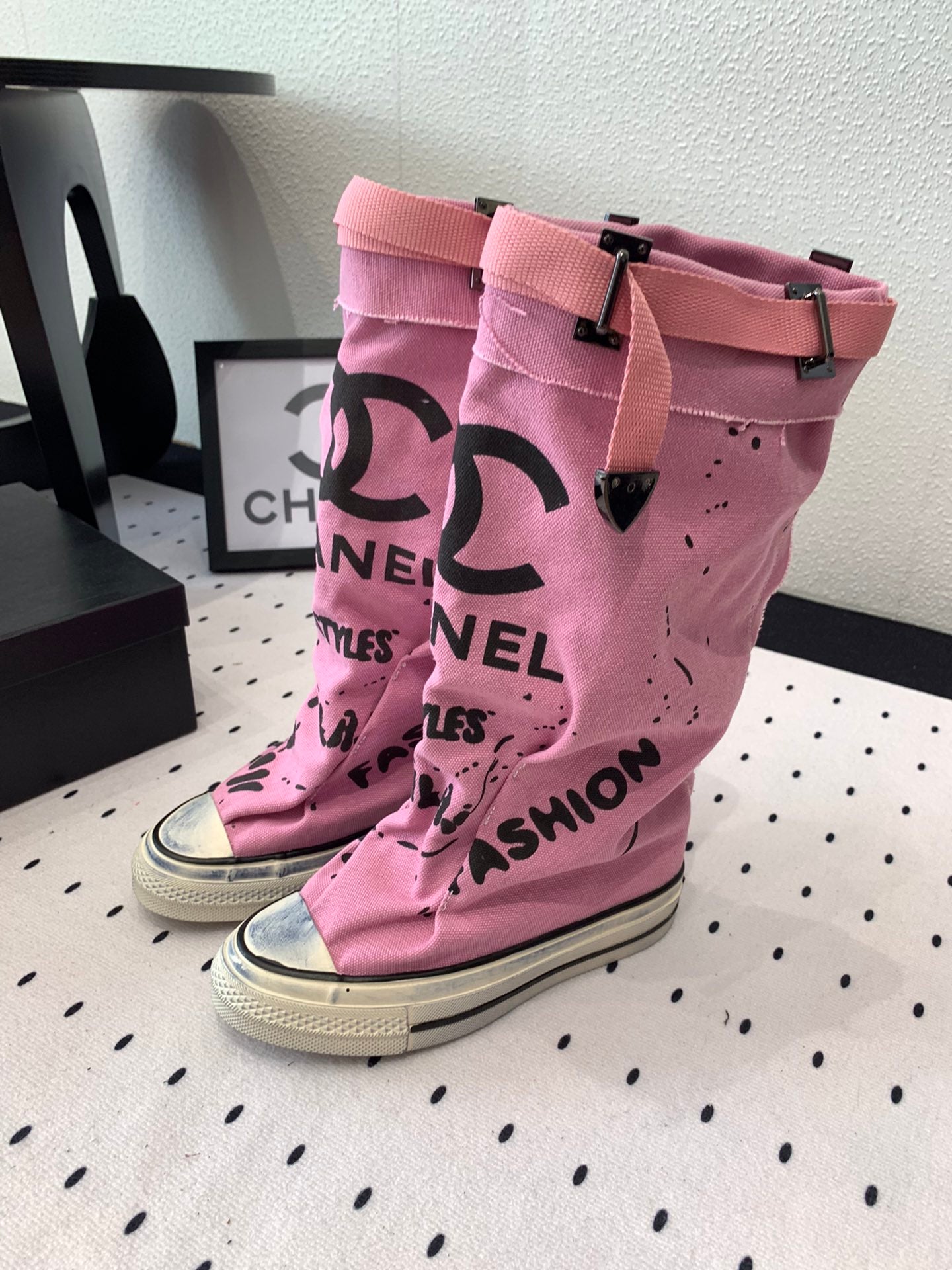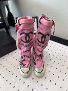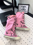 CC High-Top Canvas Boots Pink Black Denim Fabric 938048
