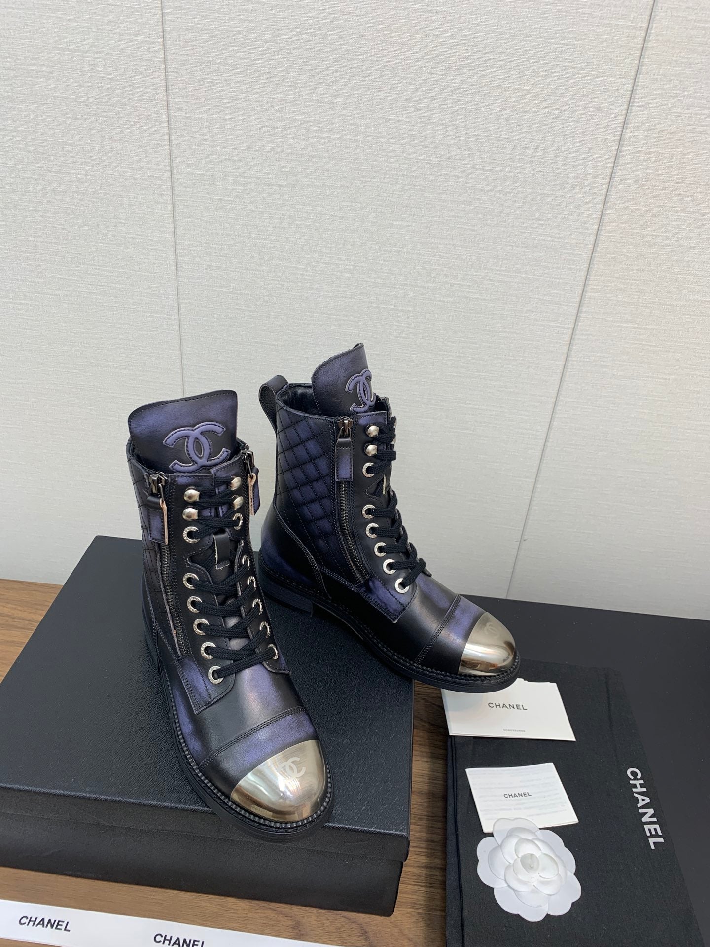 CC Short Boots Purple Black Yellow Cowhide