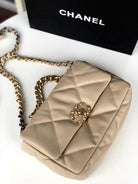 19 FLAP BAG CREAM GOATSKIN GOLD HARDWARE