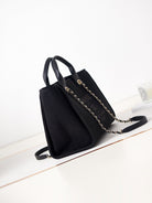 cc deauville shopping small tote 33cm black mixed fabric calfskin