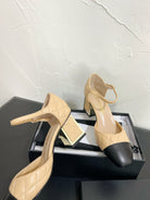 CC Mary Janes 55mm In Beige Mix Black Quilted Lambskin 949764