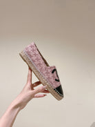 espadrilles pink tweed black patent calfskin