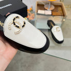 CC 25 Mule Black White Calfskin Large Double C Logo