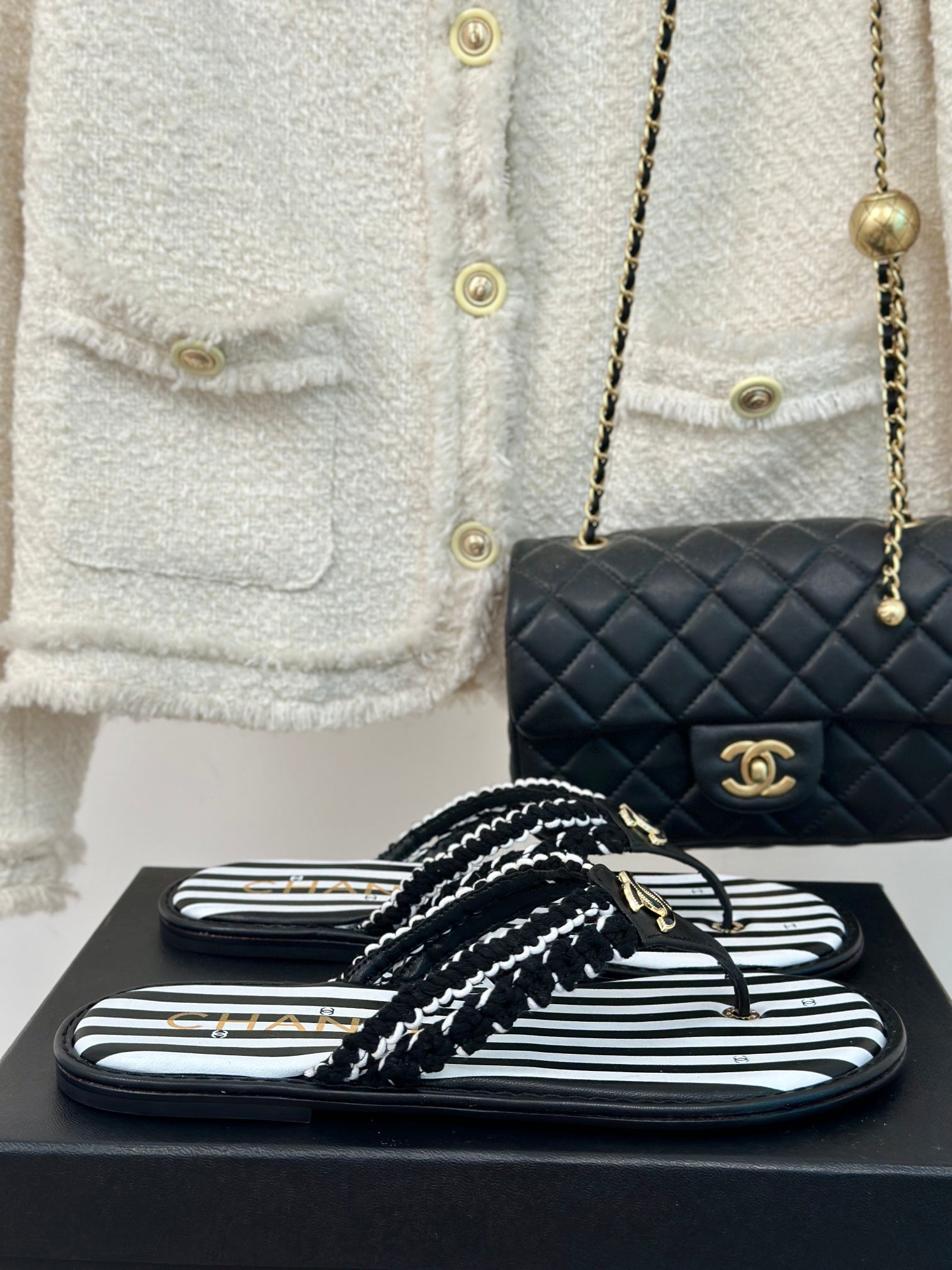 CC 25 Thong Sandal Braided Striped Black White