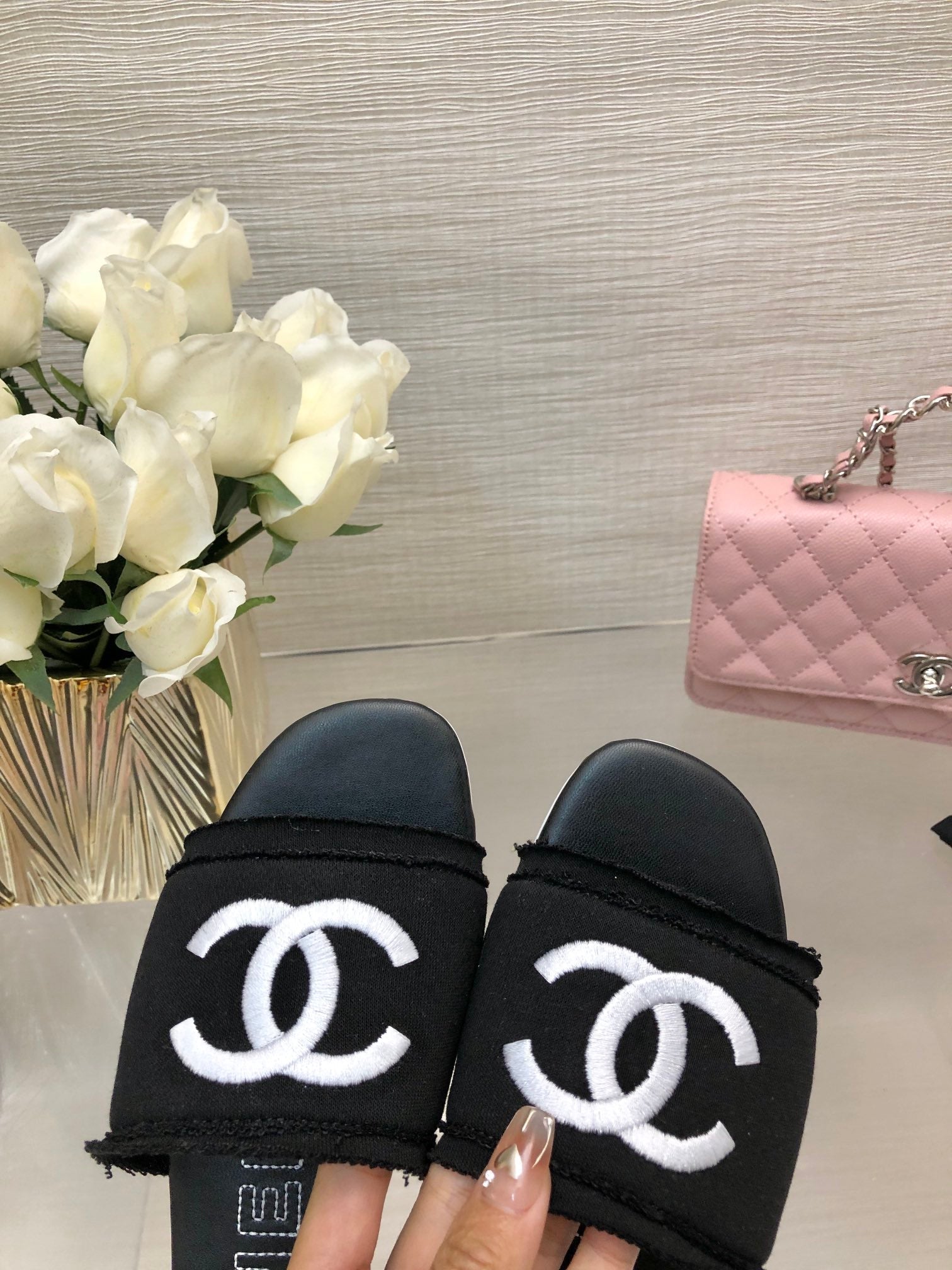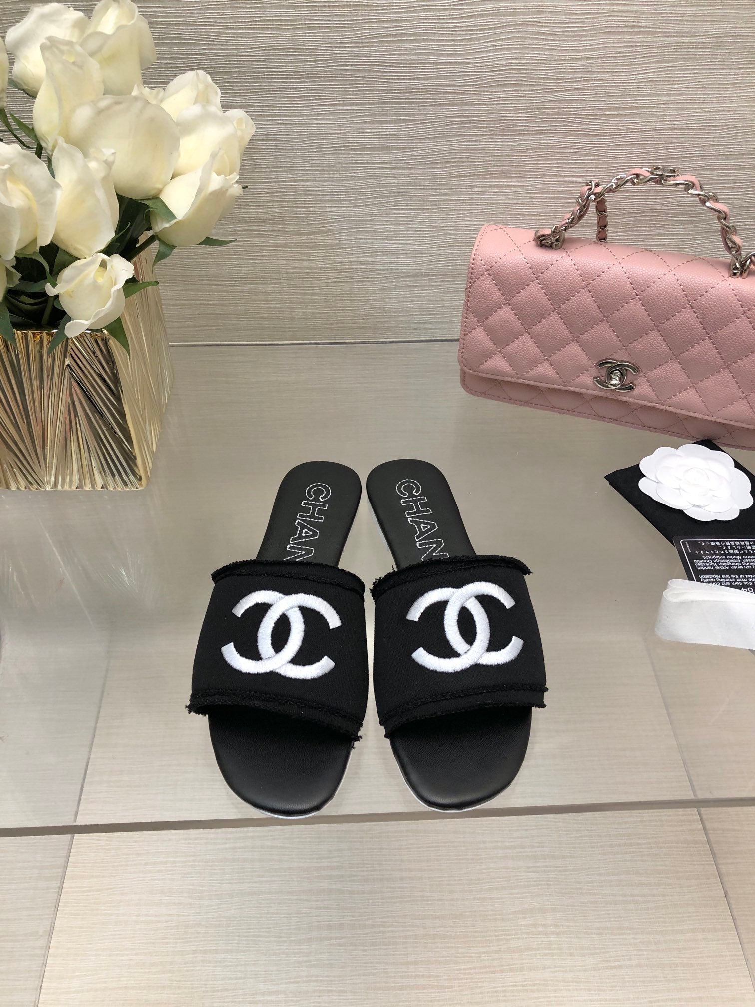 CC 25C Slippers Black Fabric Material 212964