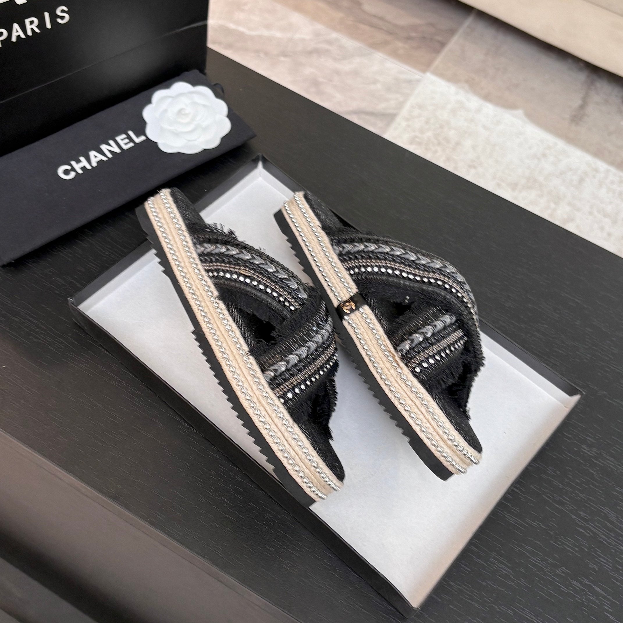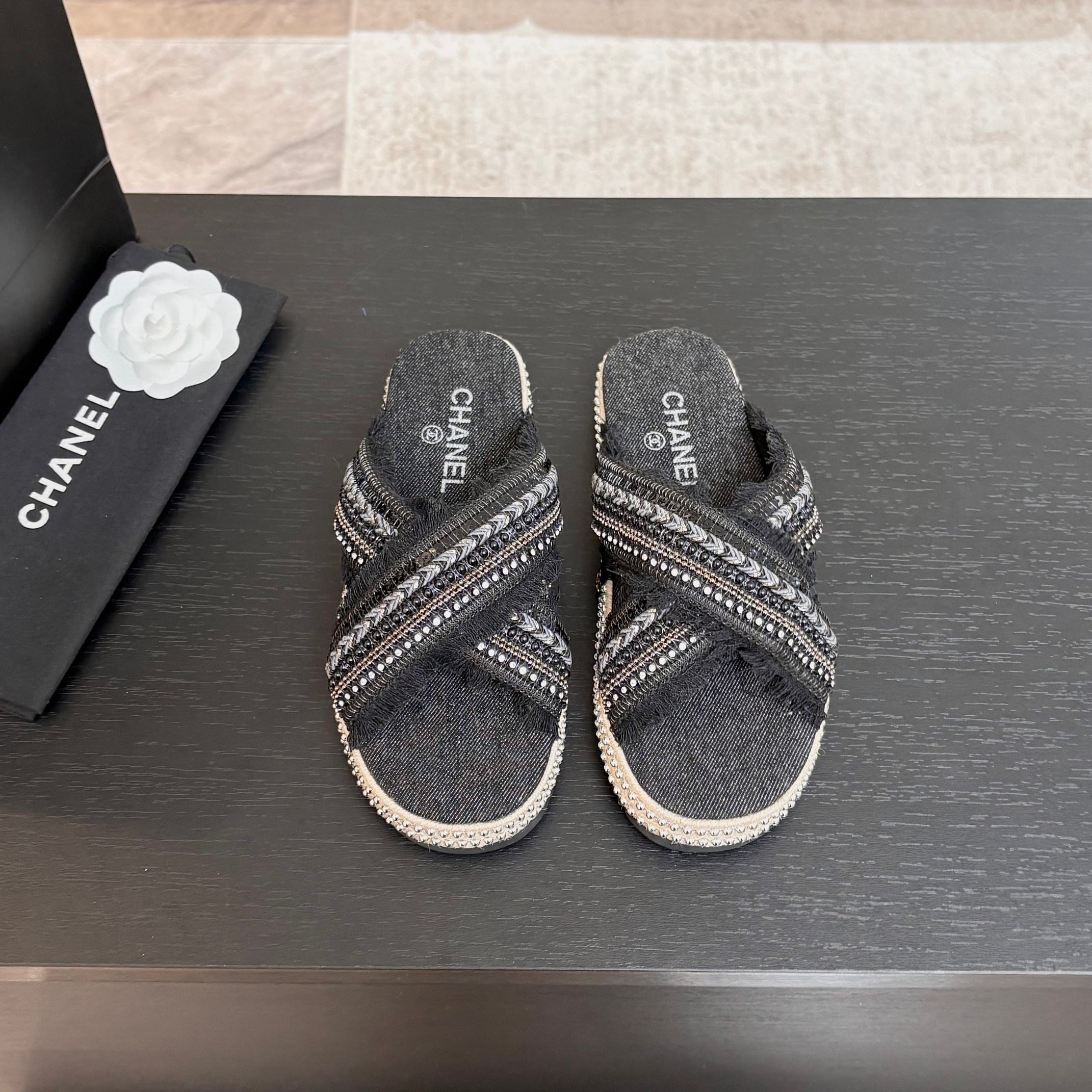CC 25C Thick-Soled Slipper In Black Denim Space blue Fabric 213231