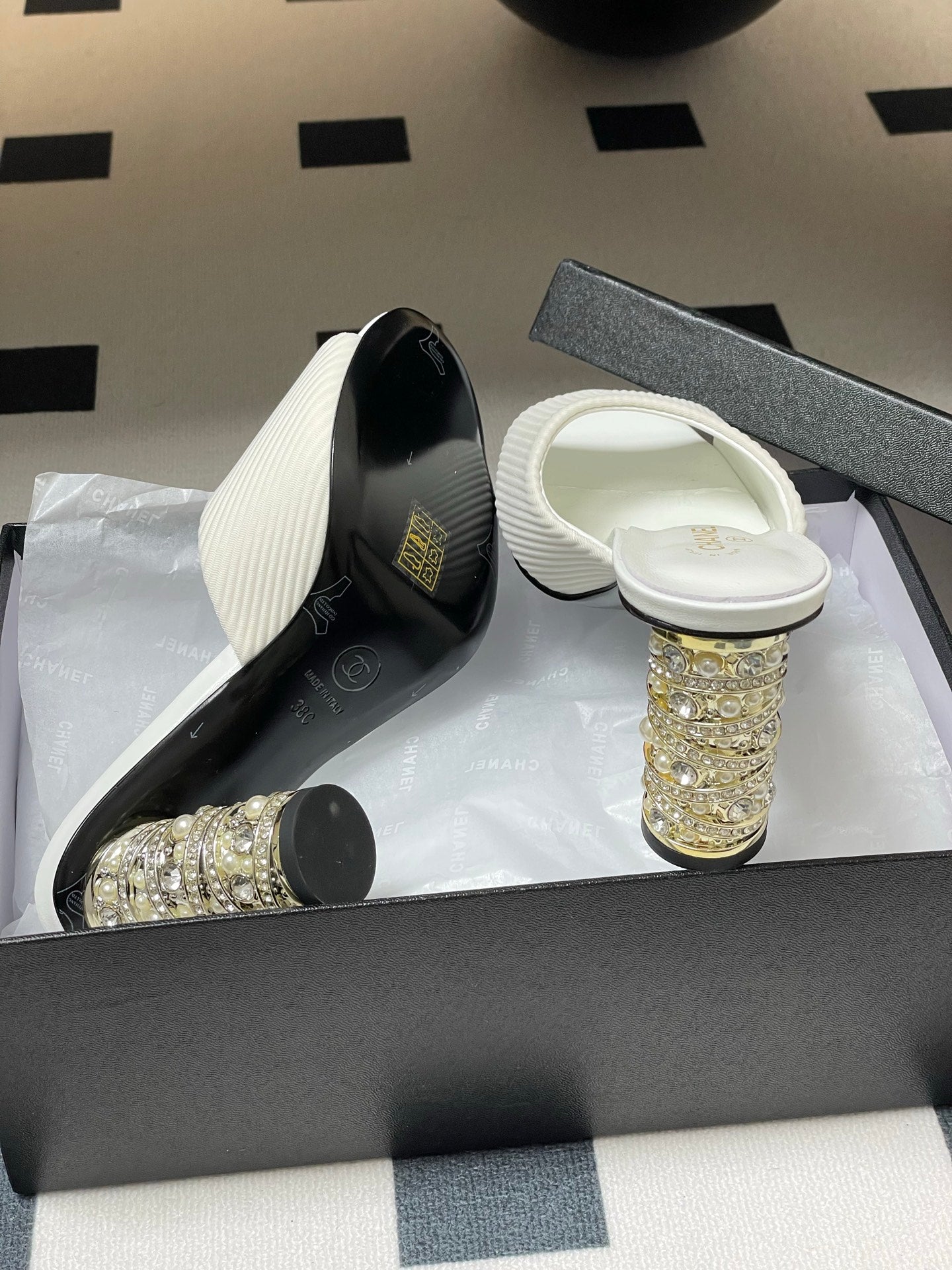 CC 25p Sandal Heel 8cm White Cloth