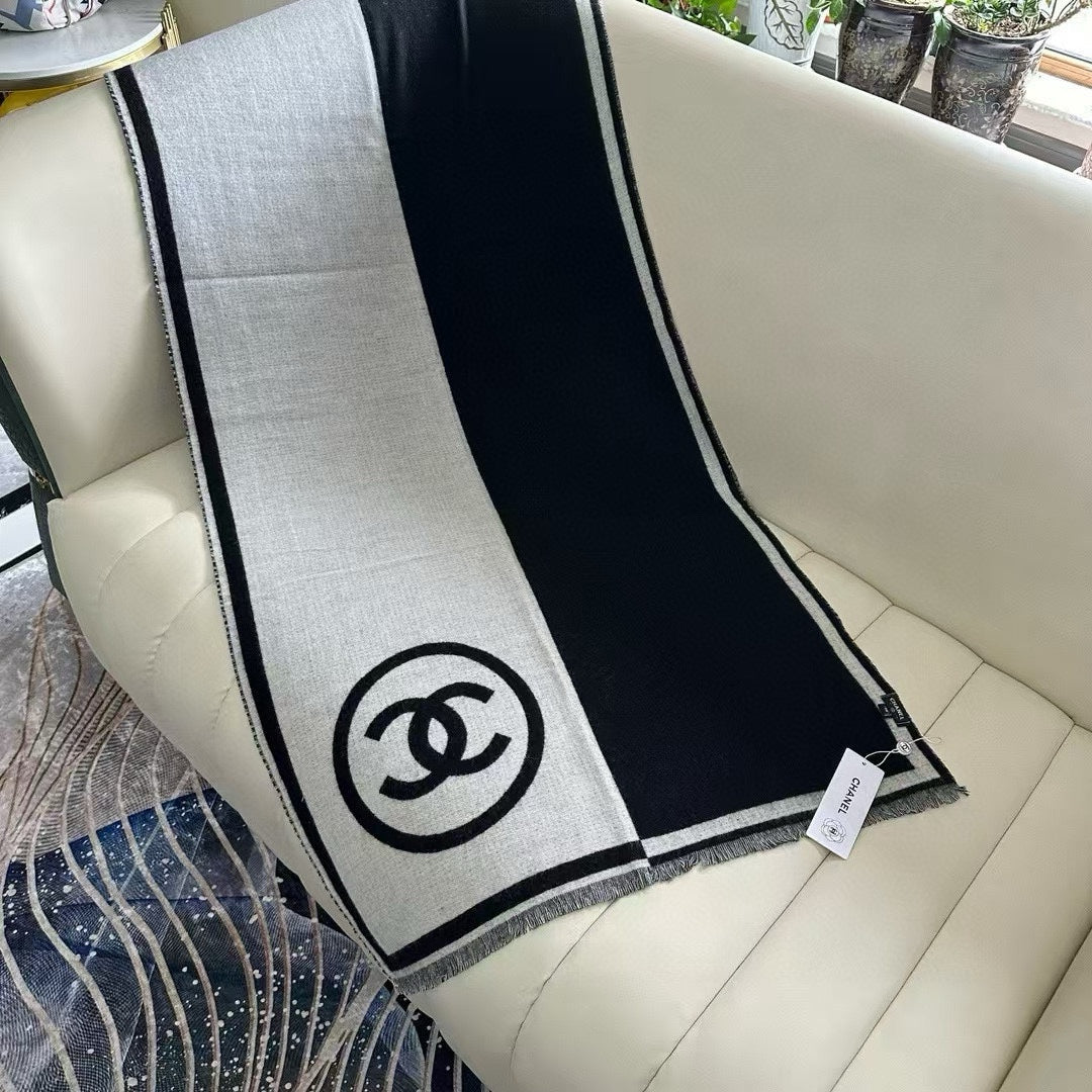 CC Scarf 195 CM In Grey Mix Black Cashmere And Wool 416924