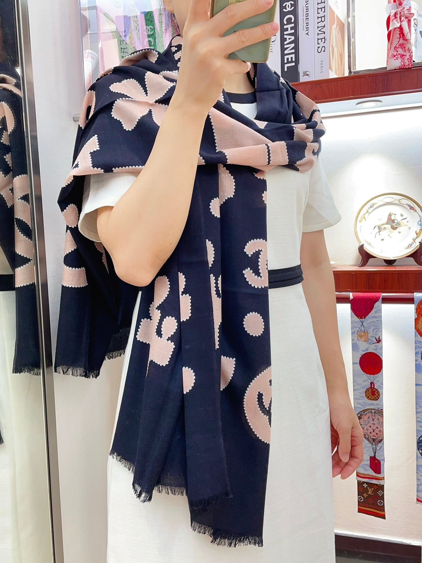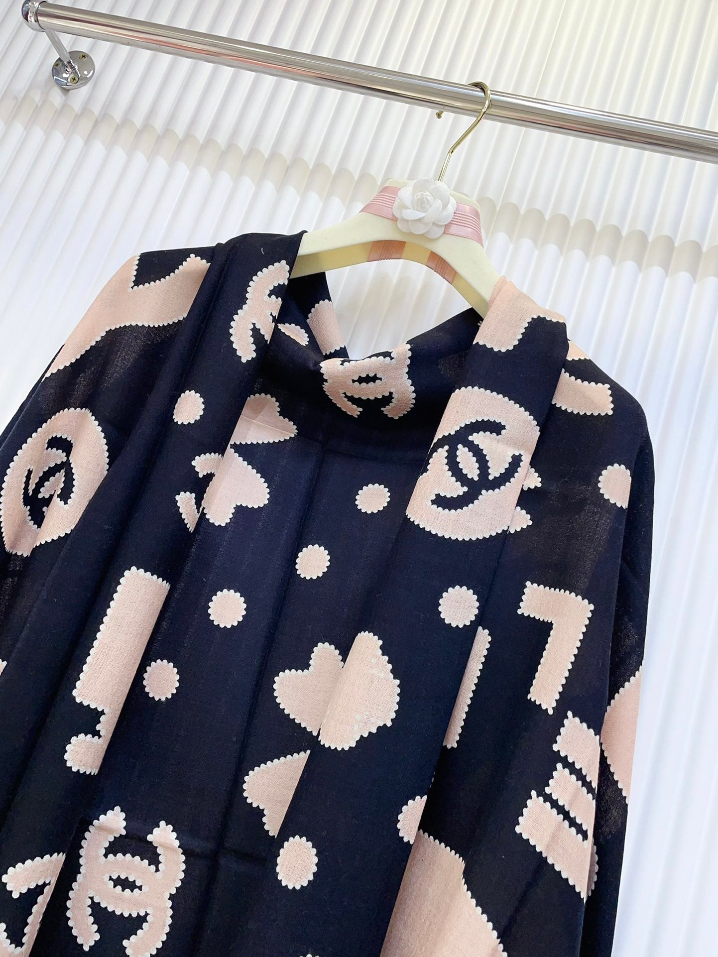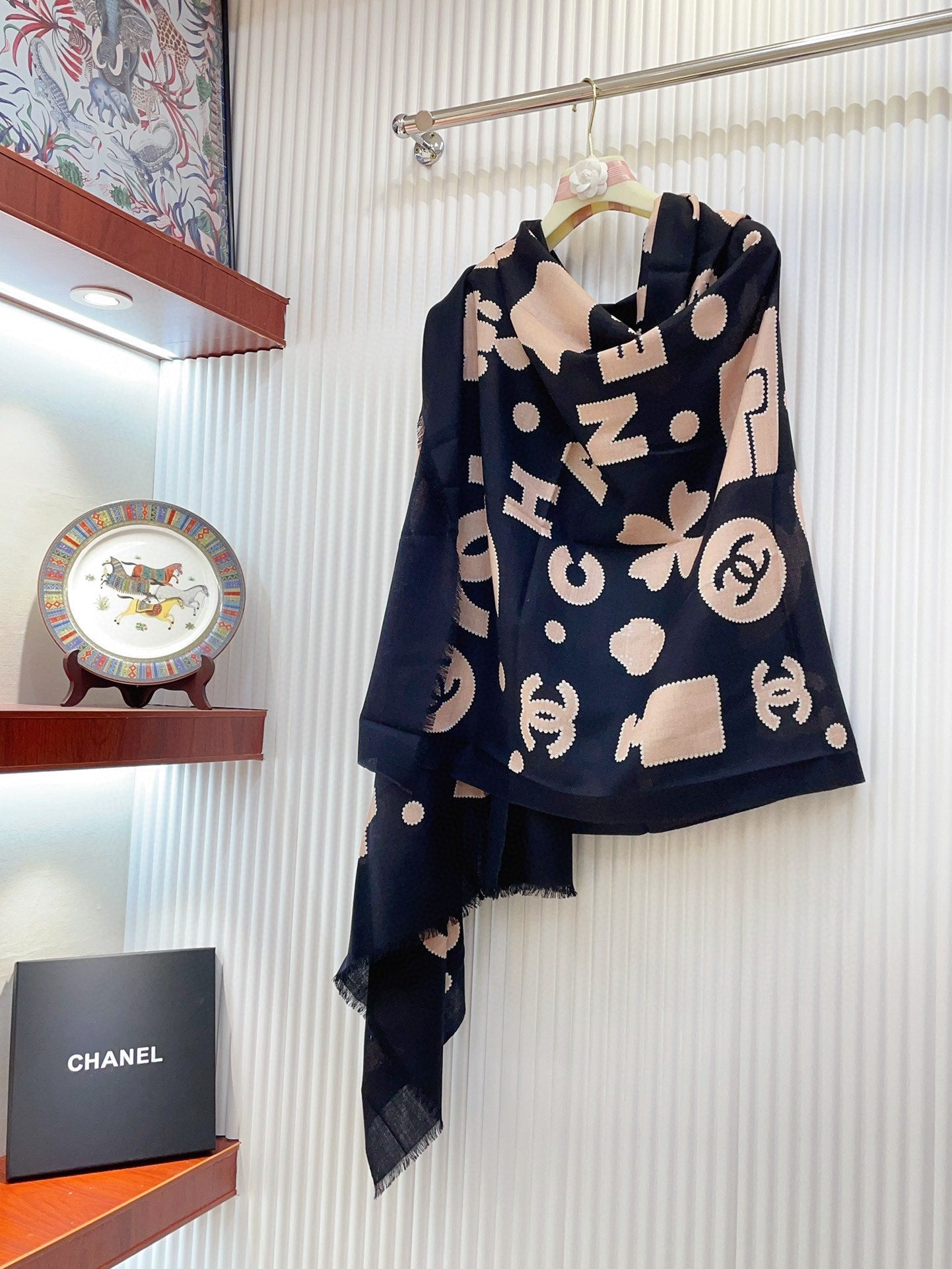 CC Scarf 200 CM In Black Mix Beige Silk Cashmere 324746