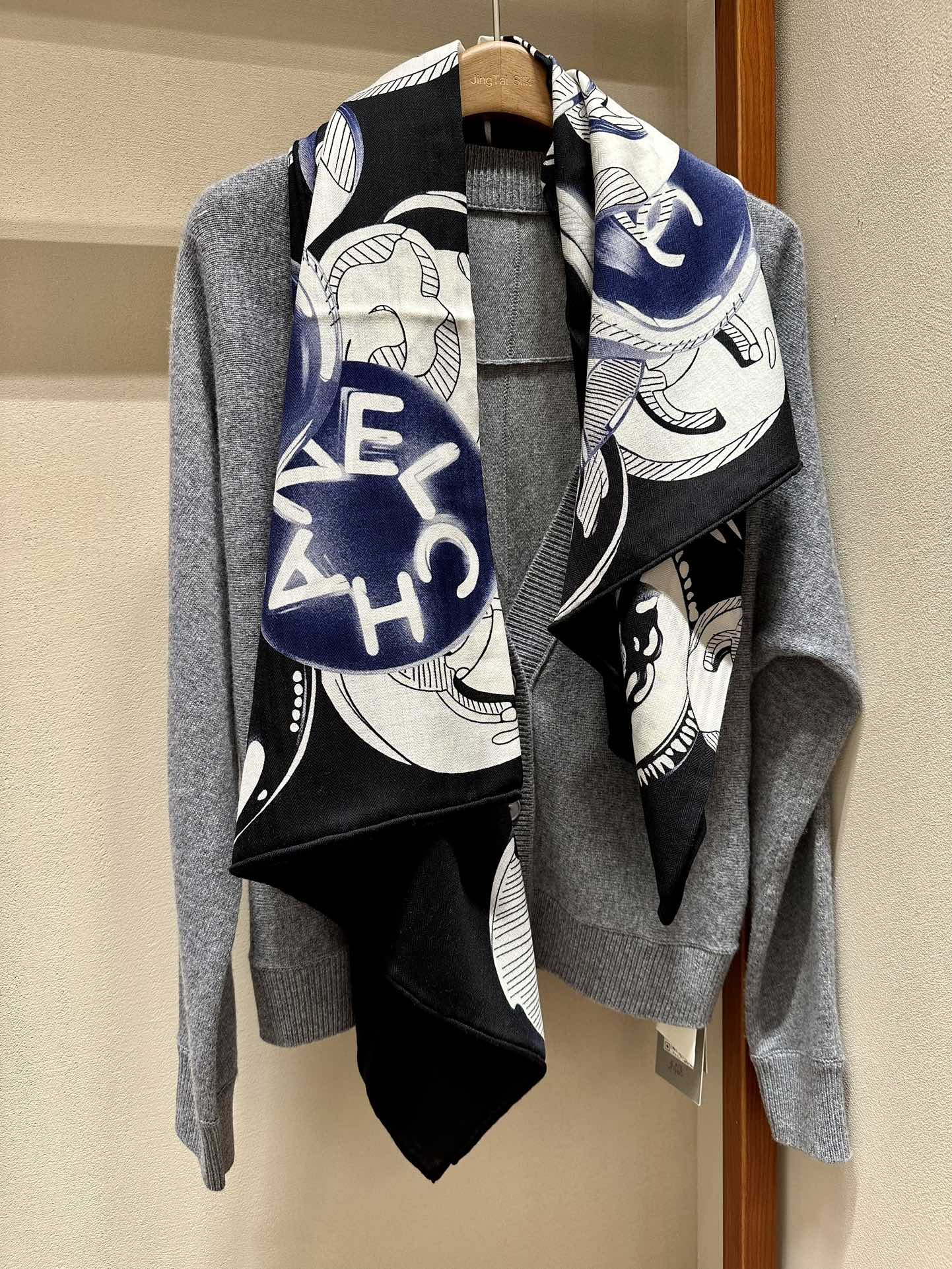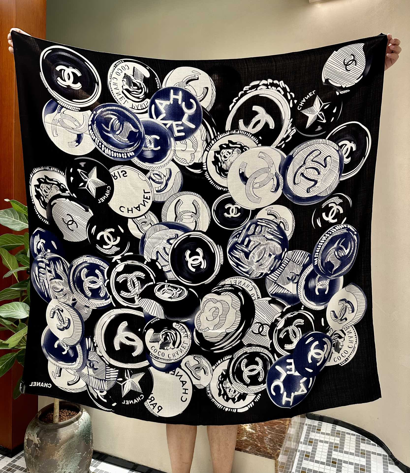 CC Square Scarf 140 CM In Black Colorful Cashmere And Silk 418150