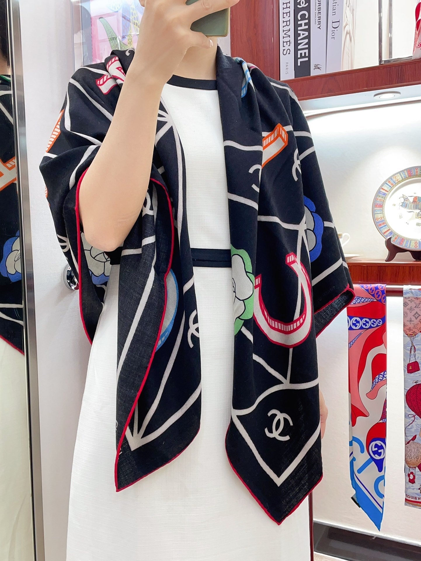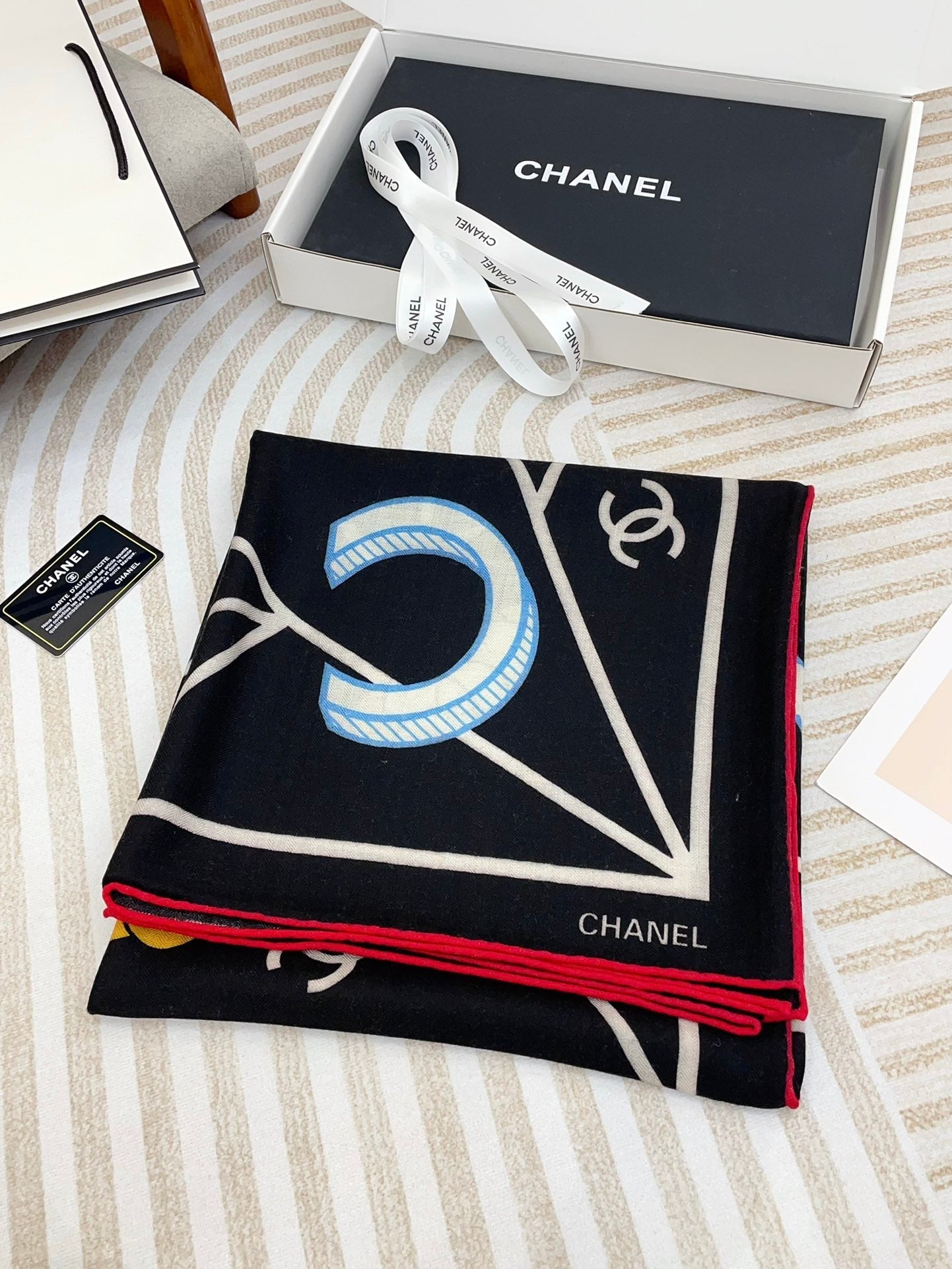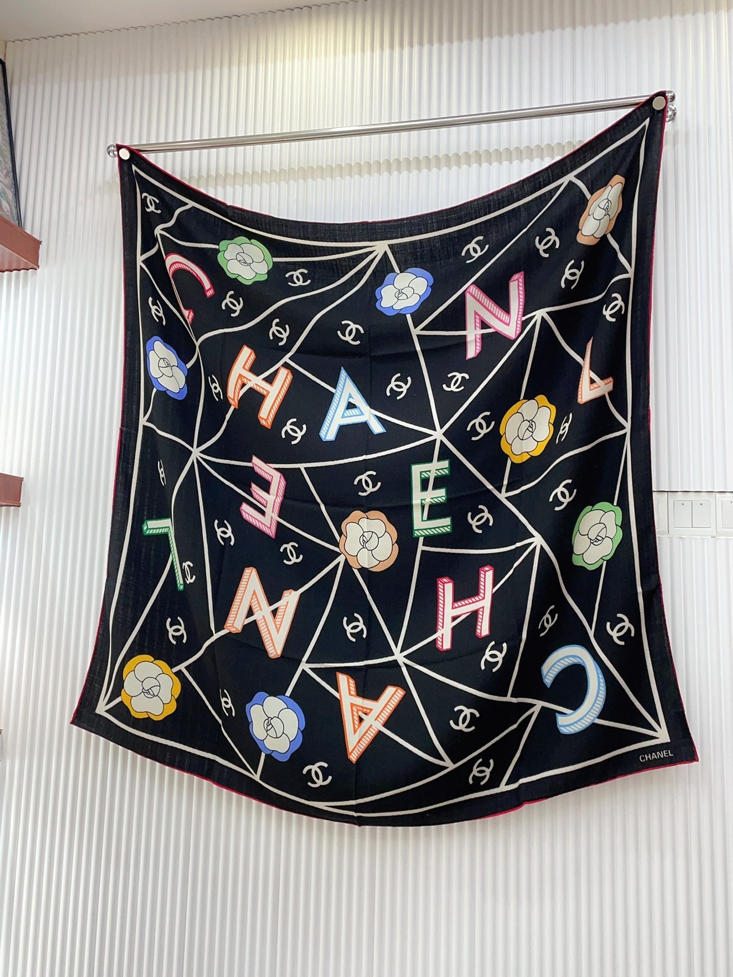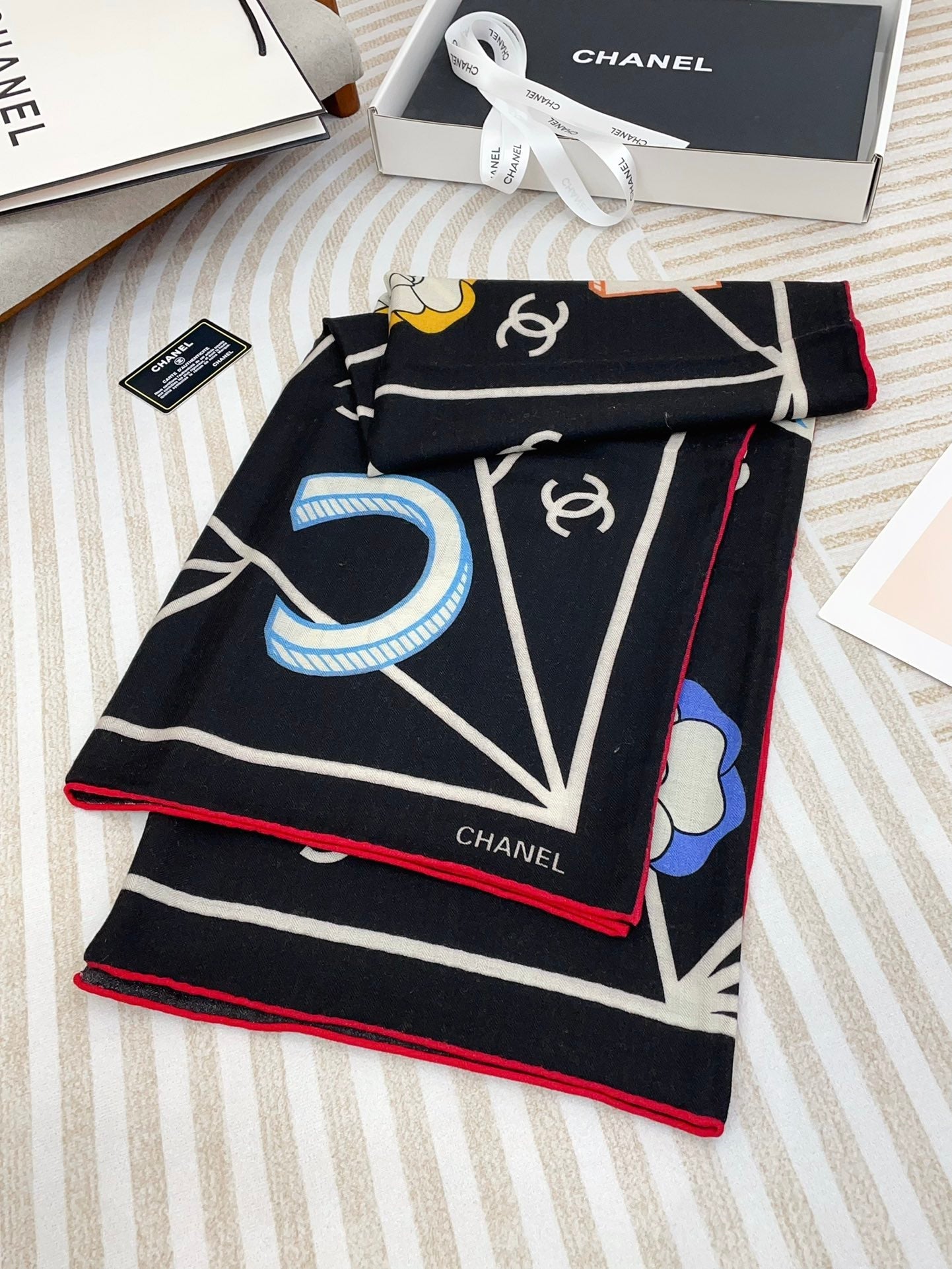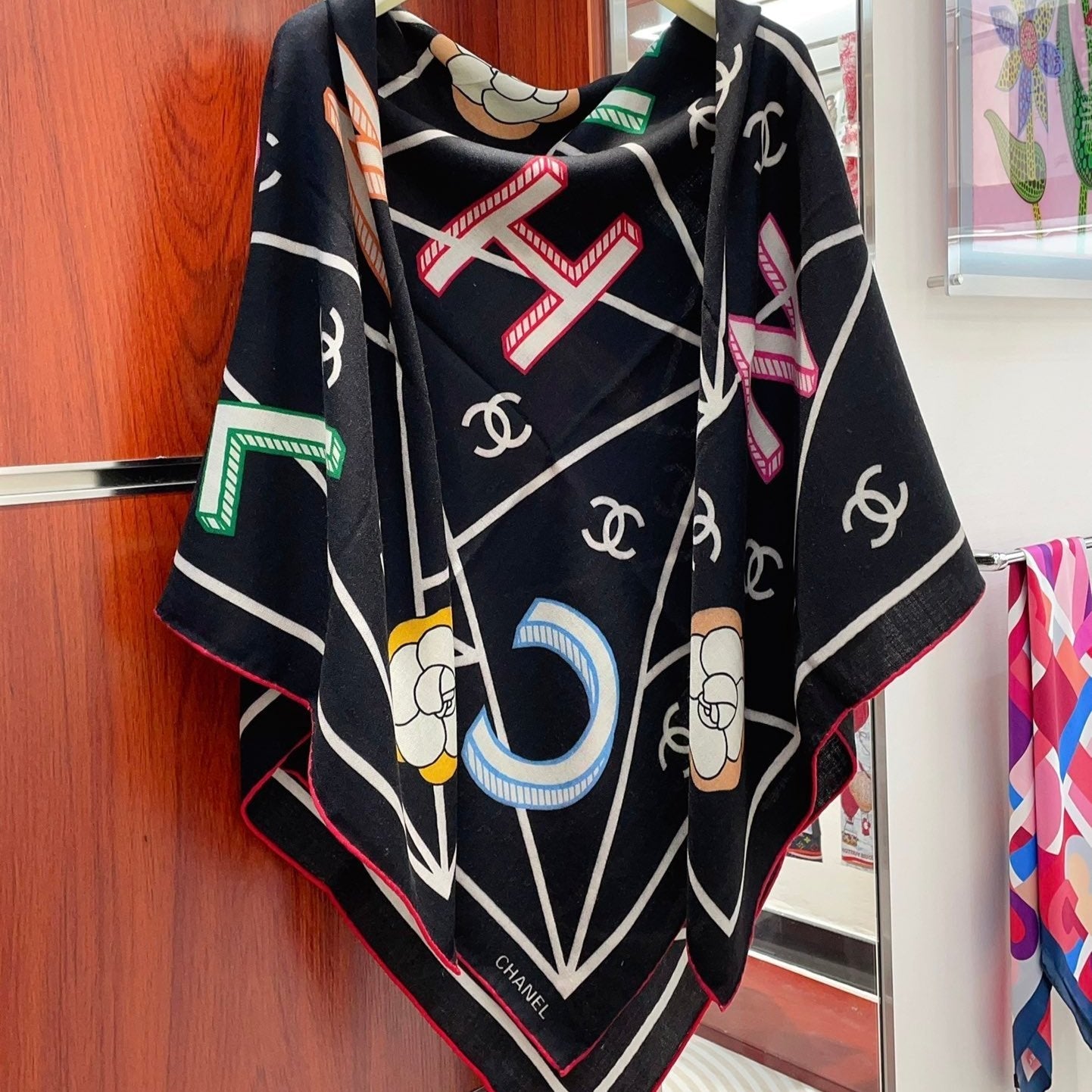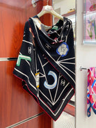 CC Square Scarf 140 CM In Black Colorful Cashmere Silk 418209