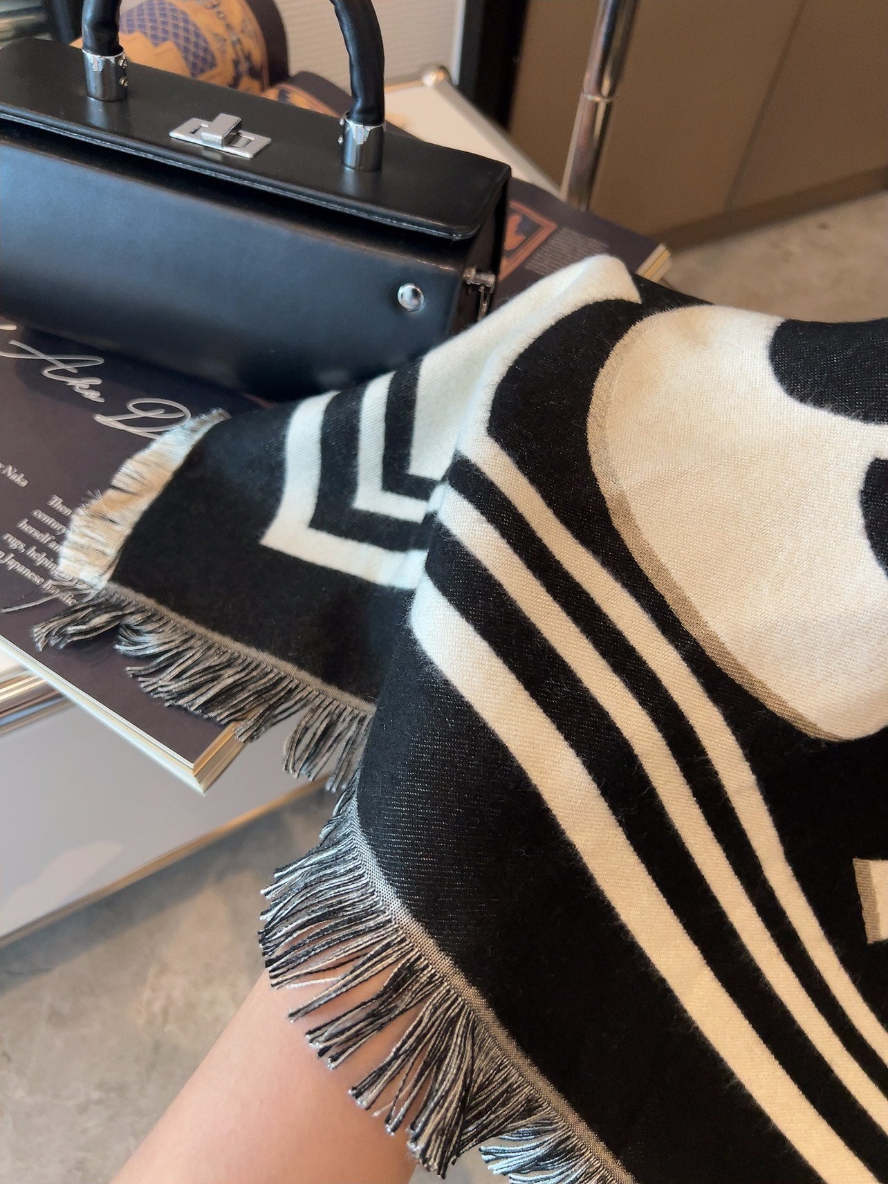 CC Square Scarf 140 CM In Black Mix White Cashmere 319061