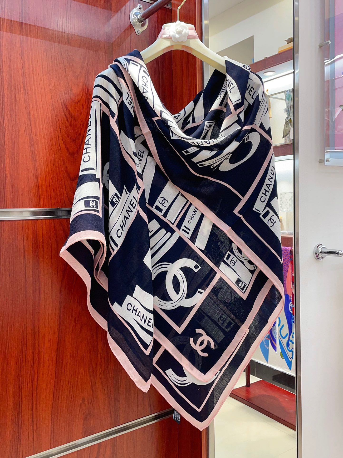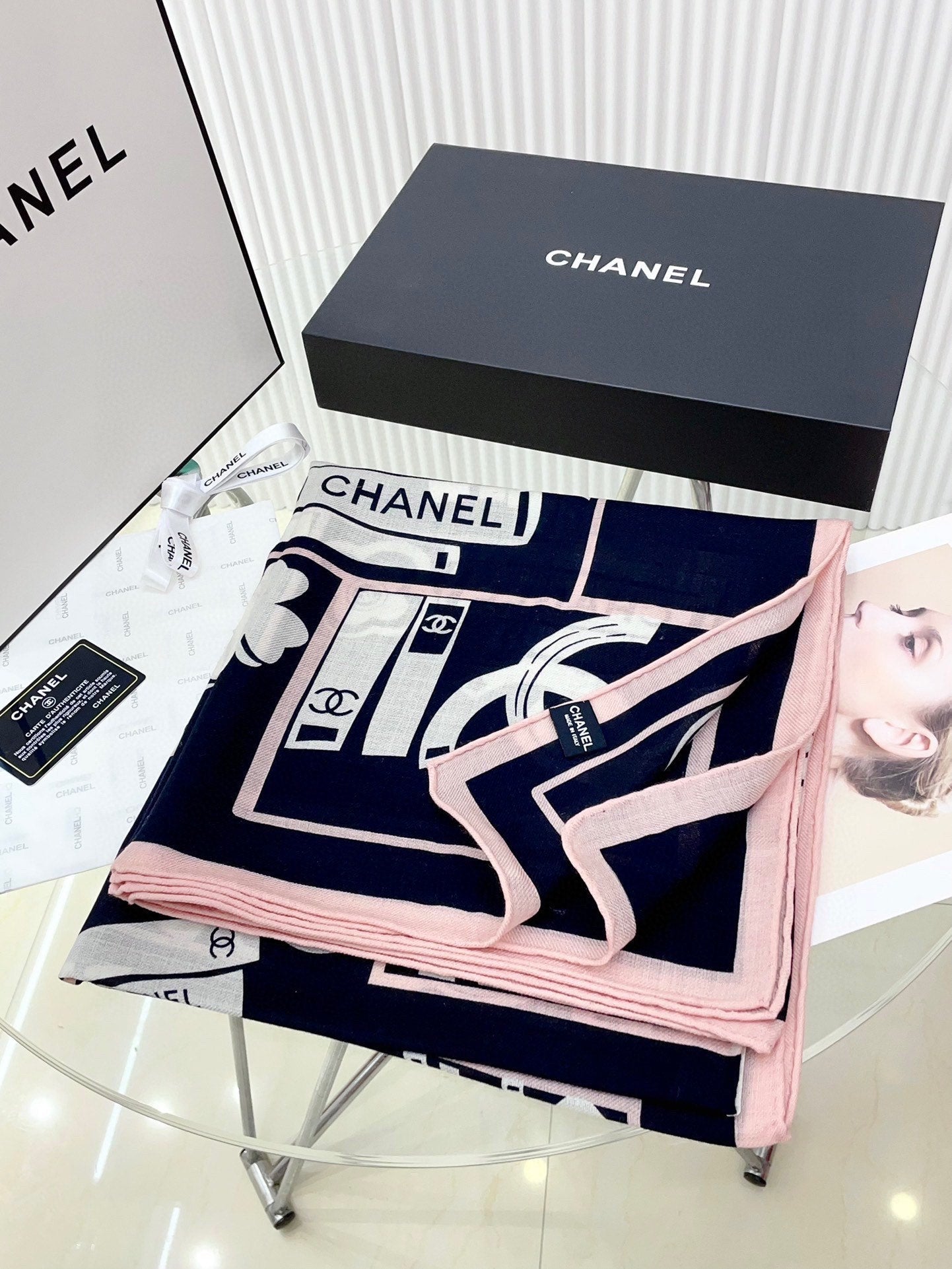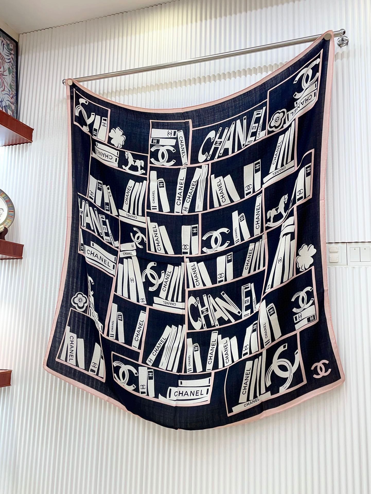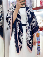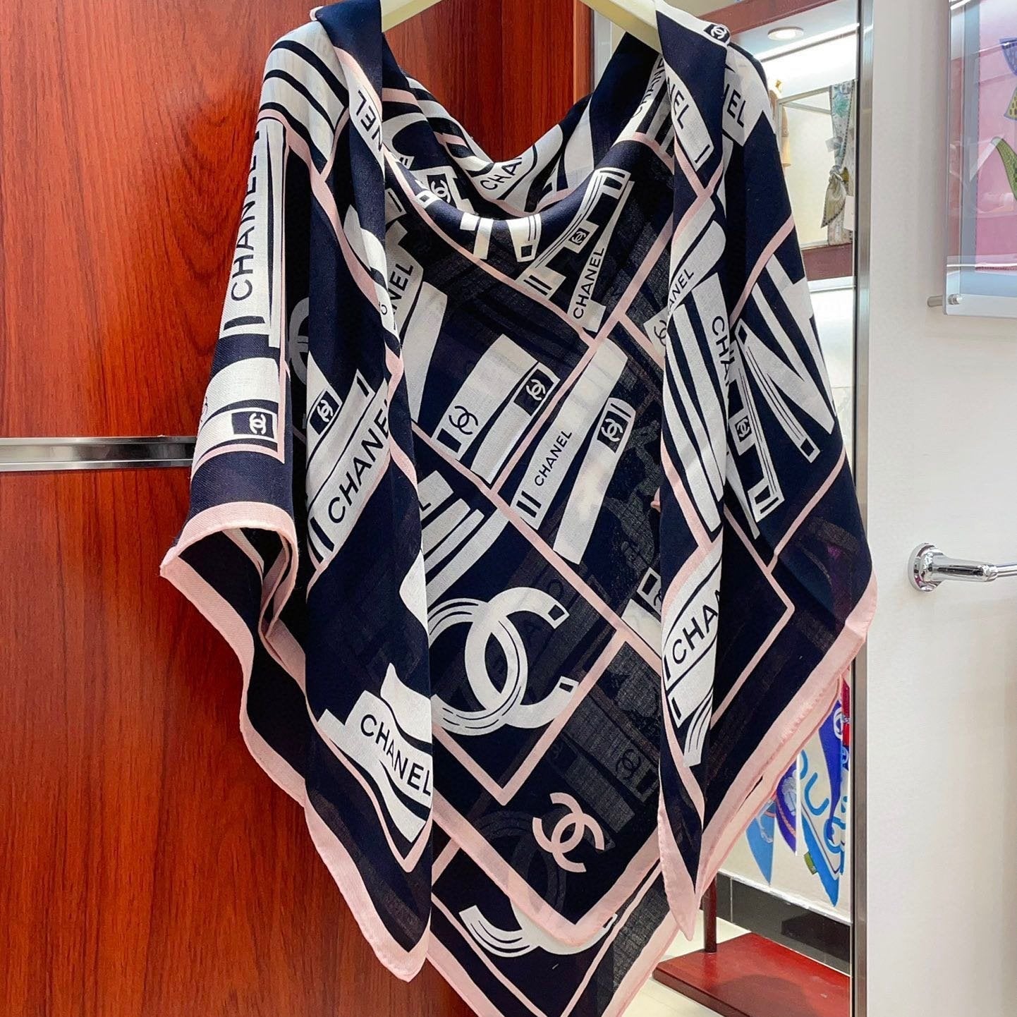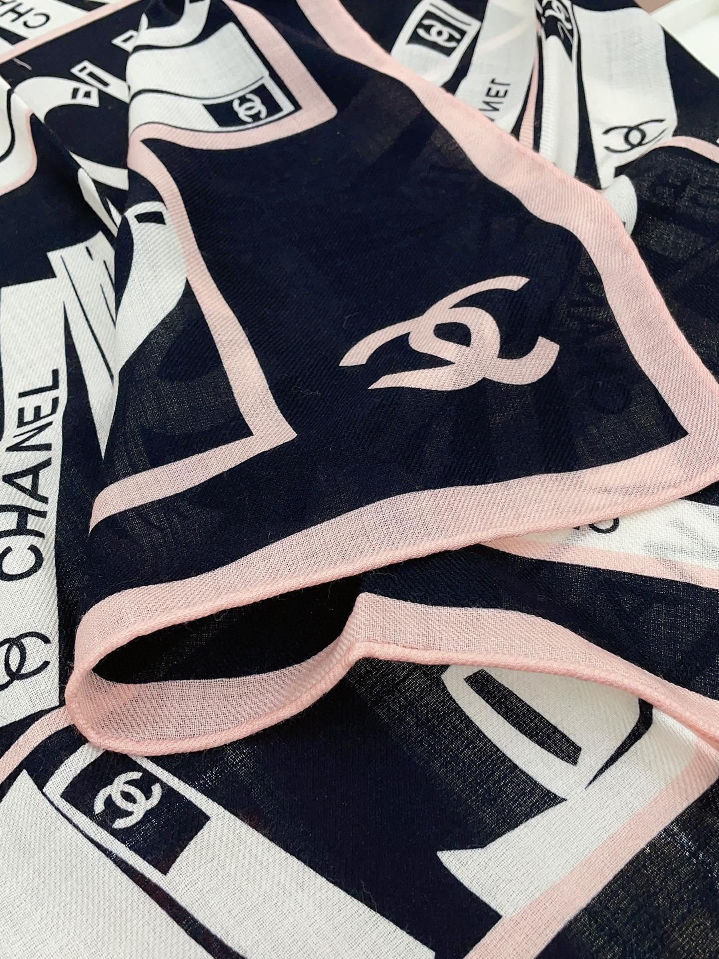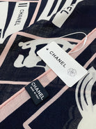 CC Square Scarf 140 CM In Black White Mix Pink Silk 422756