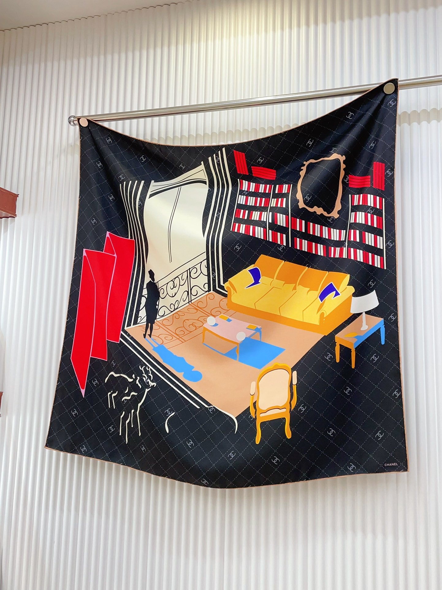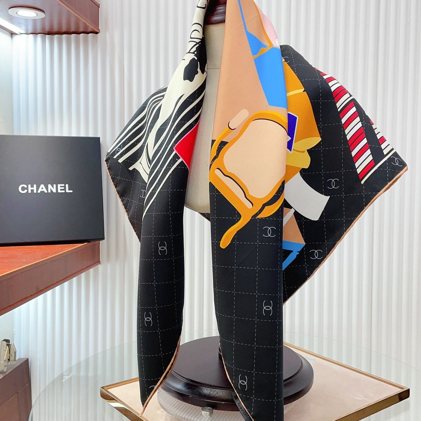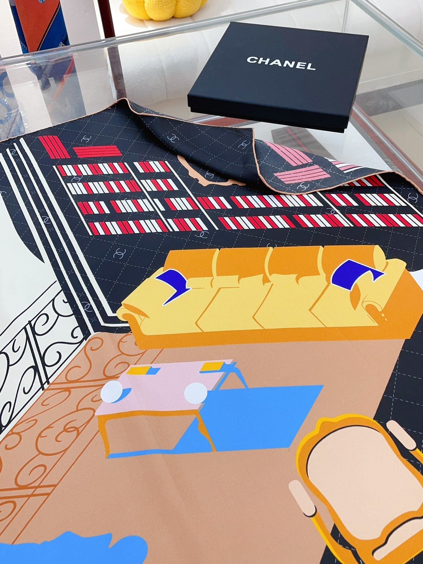 CC Square Scarf 90 CM In Black Colorful Silk Twill 187429