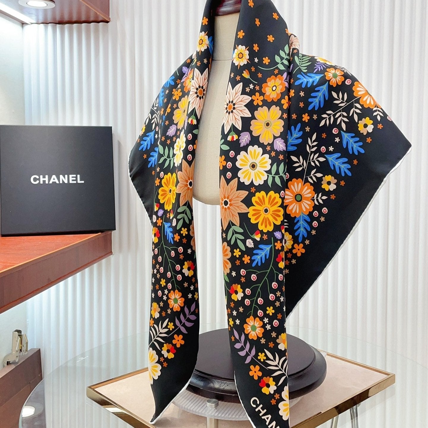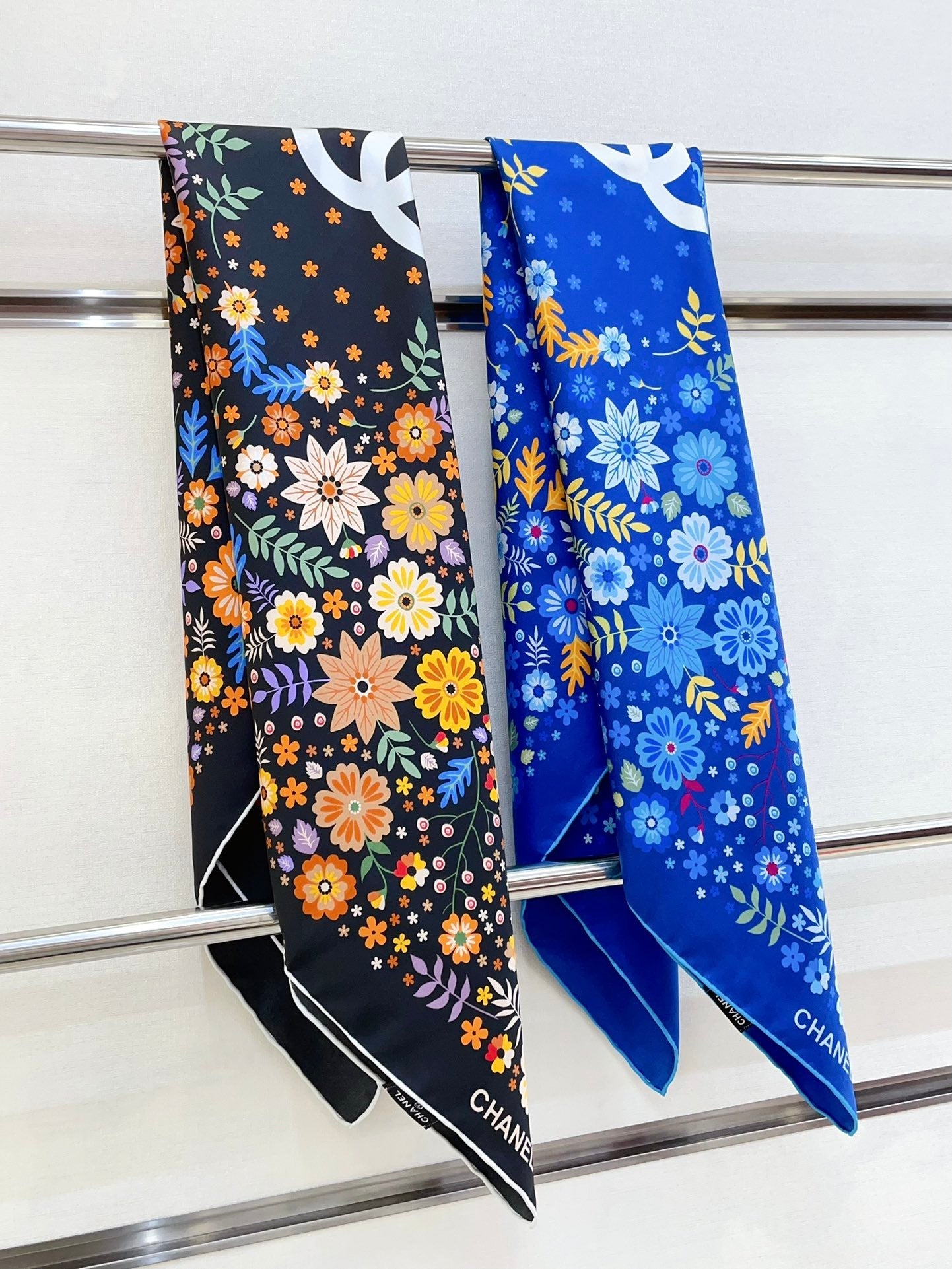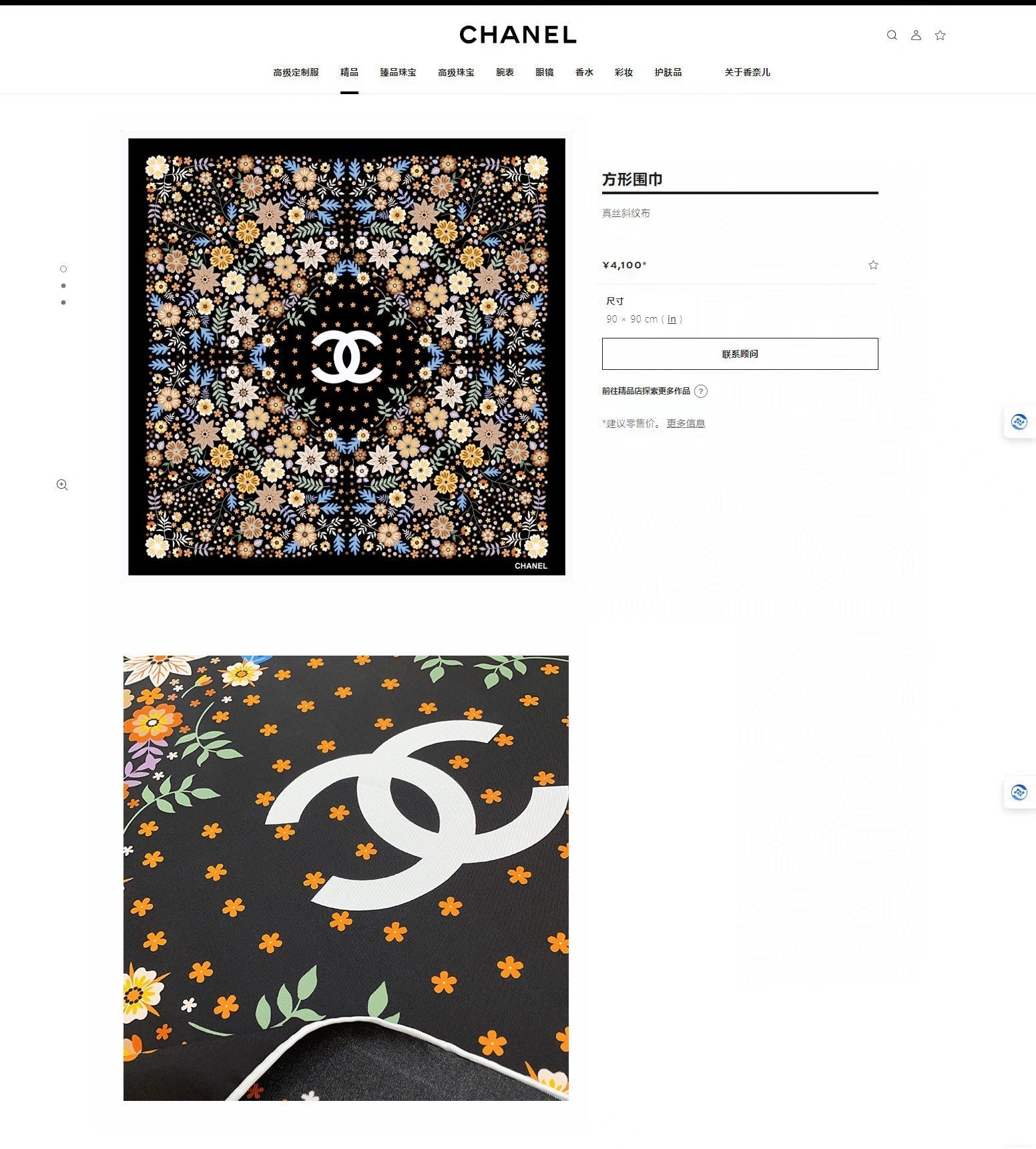 CC Square Scarf 90 CM In Black Colorful Silk Twill 234597