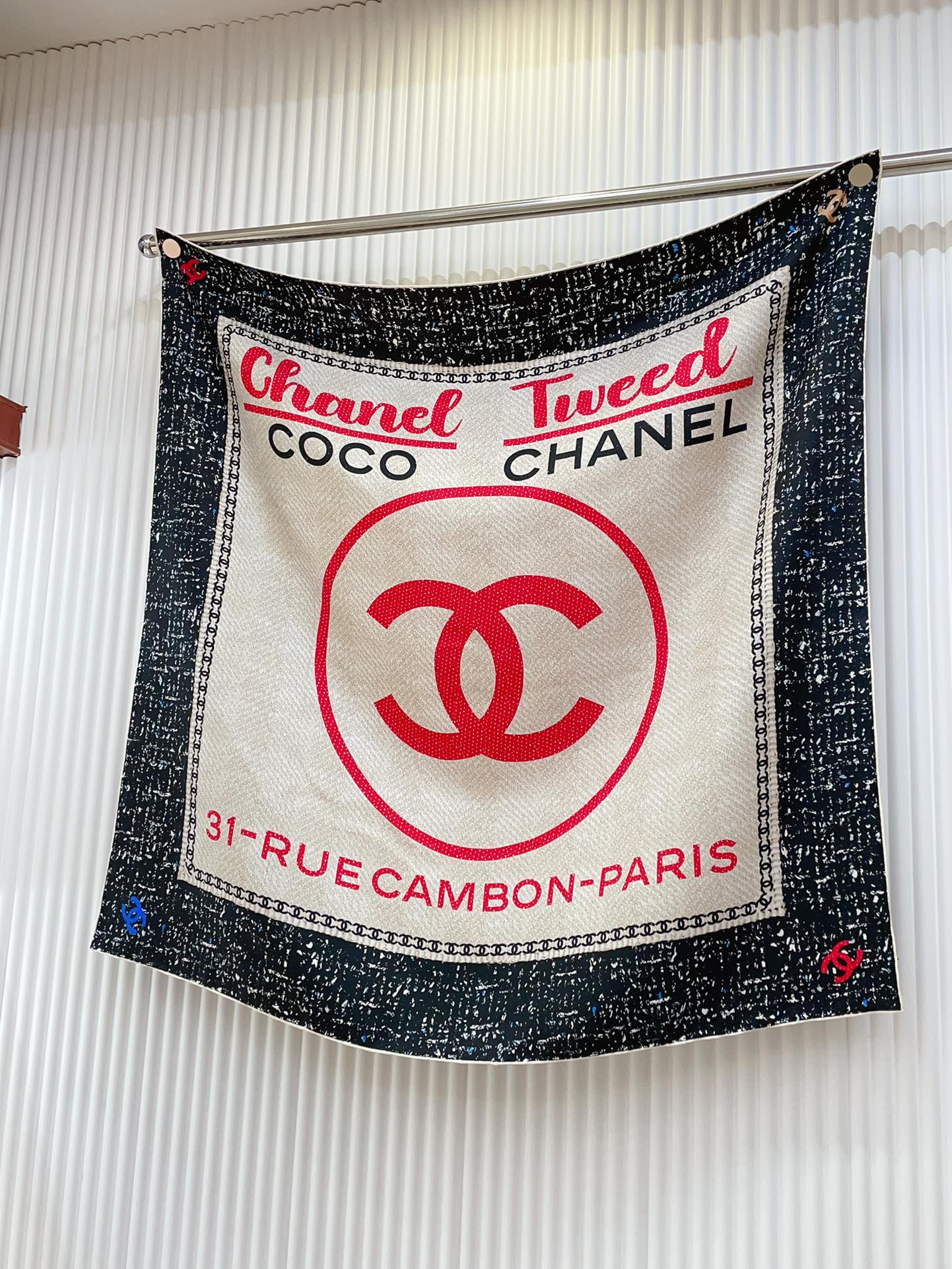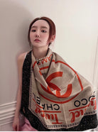 CC Square Scarf 90 CM In Black Mix Light Beige Red Cashmere Silk 172077