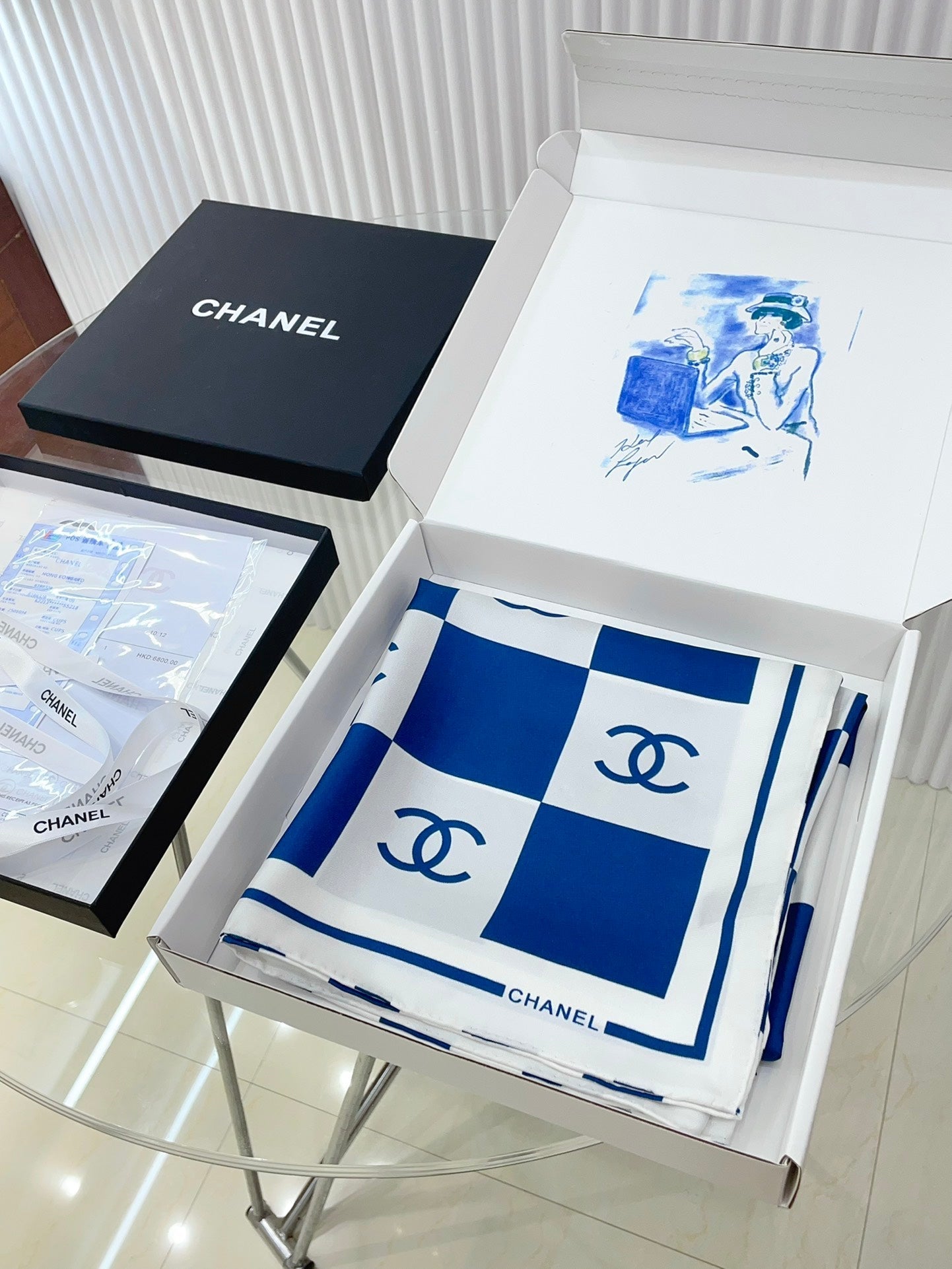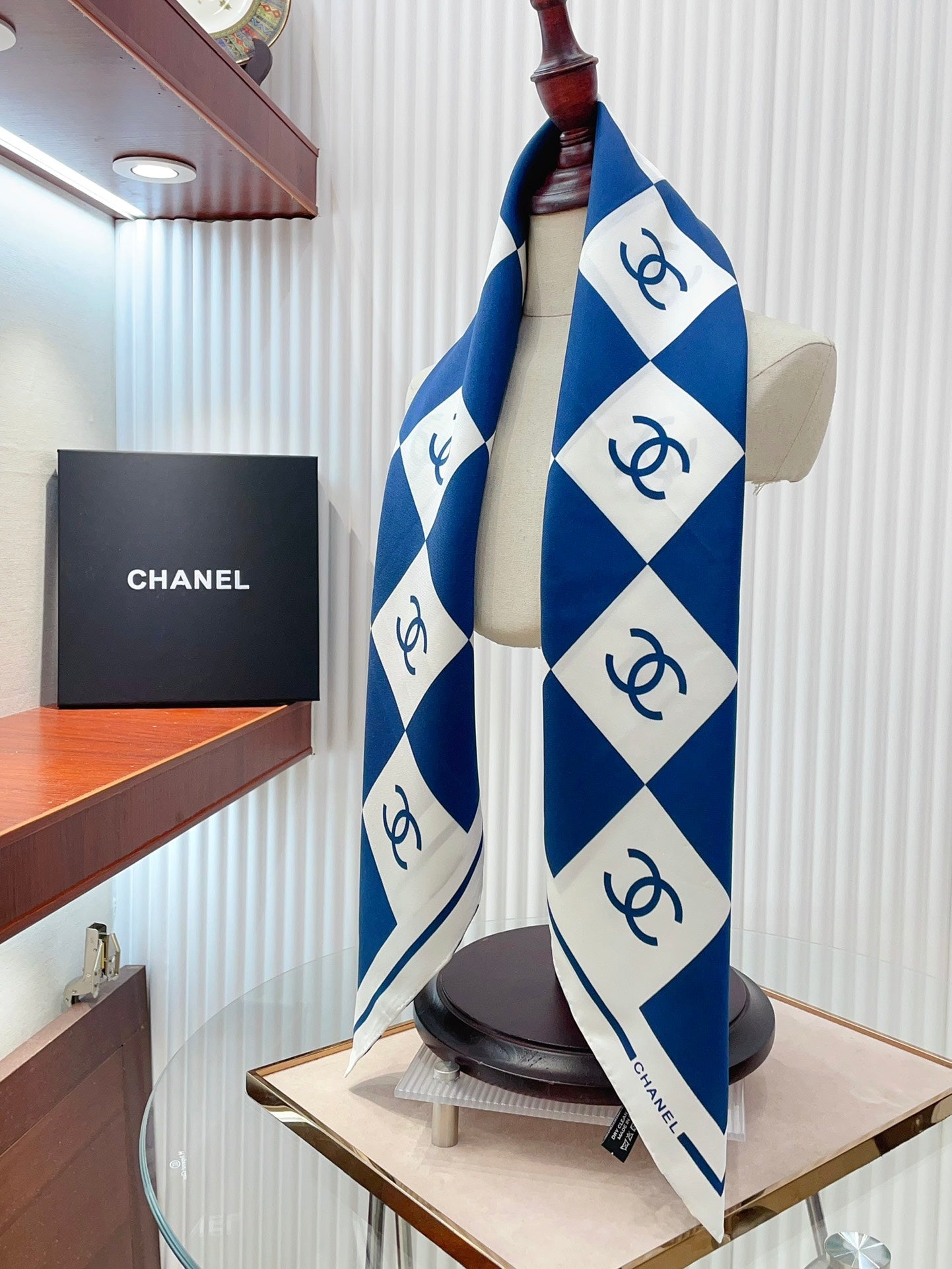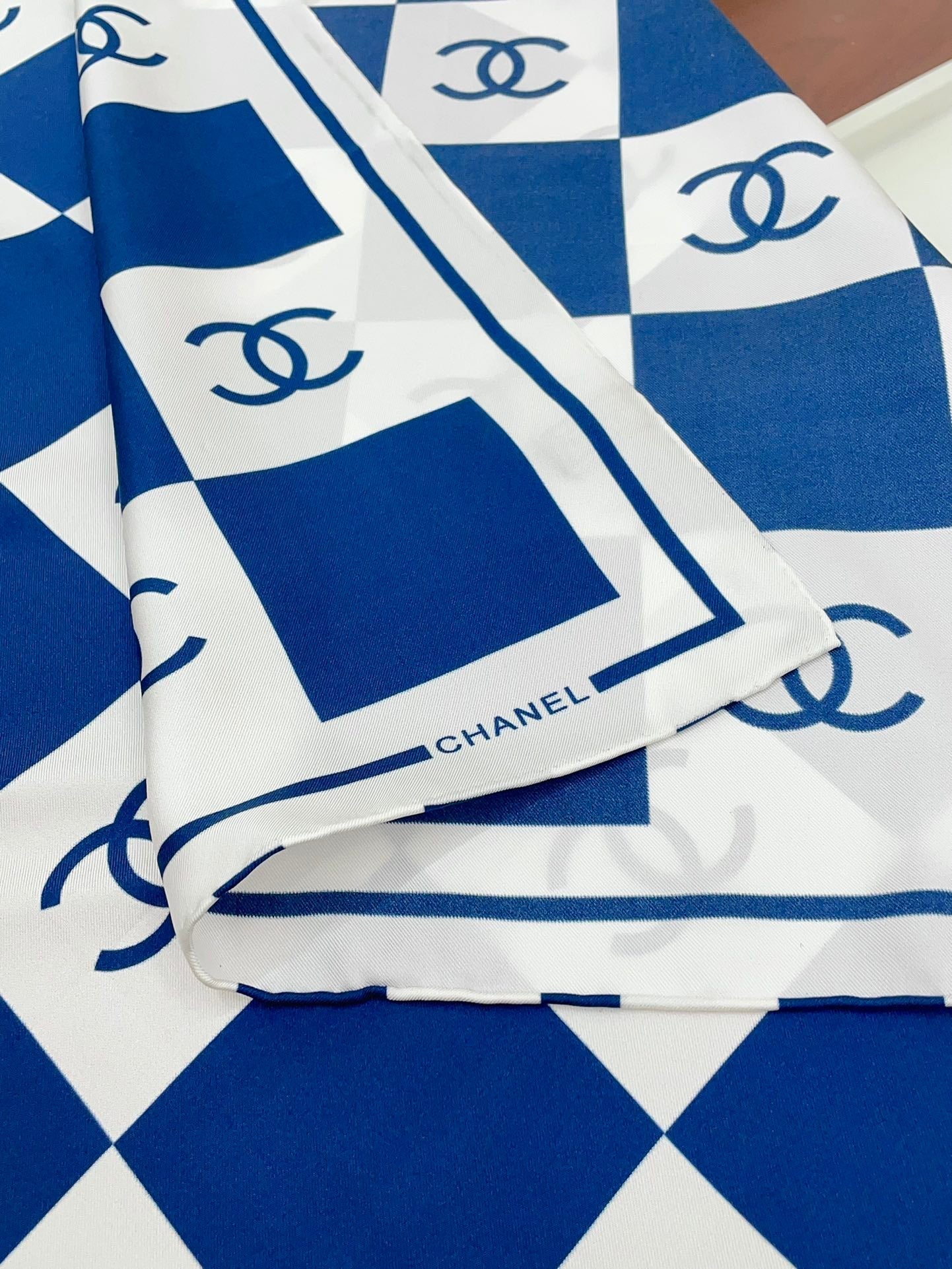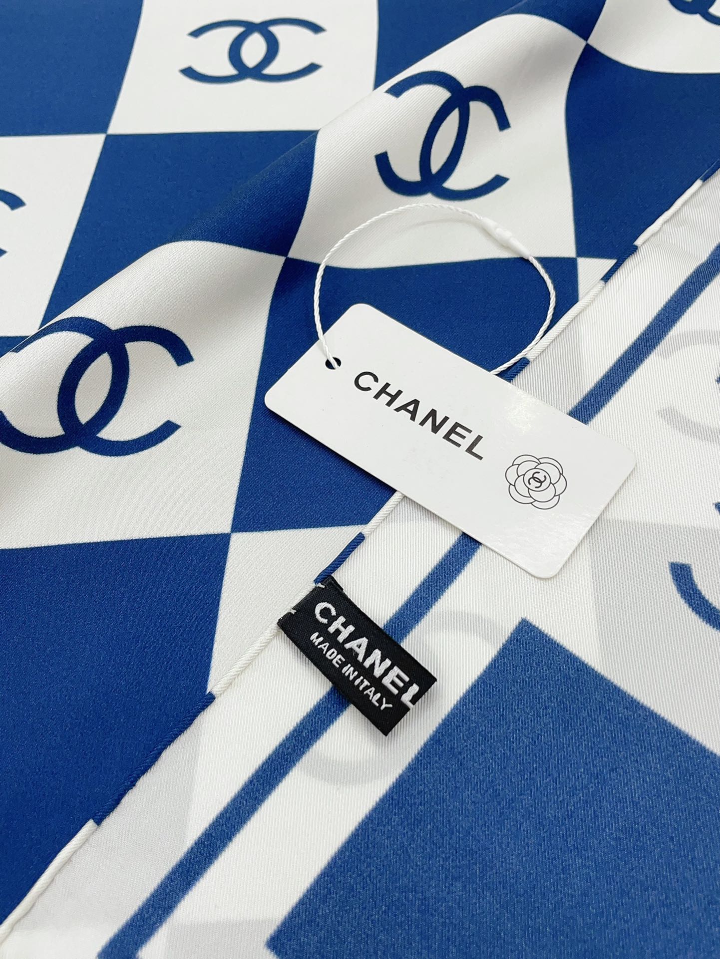 CC Square Scarf 90 CM In Blue And White Striped Silk 174876