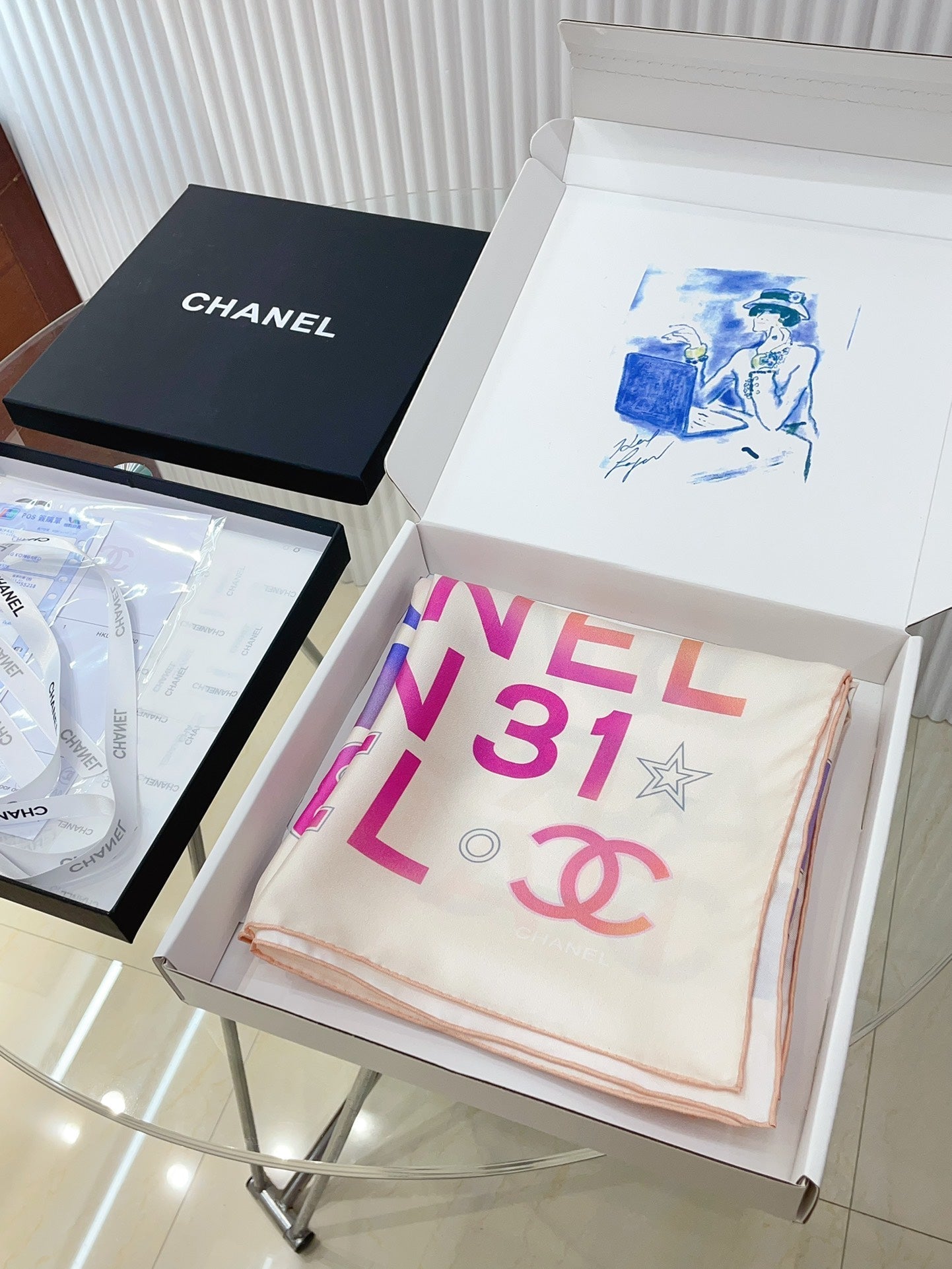 CC Square Scarf 90 CM In White Colorful Silk Twill 174877