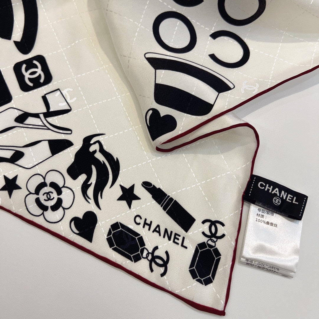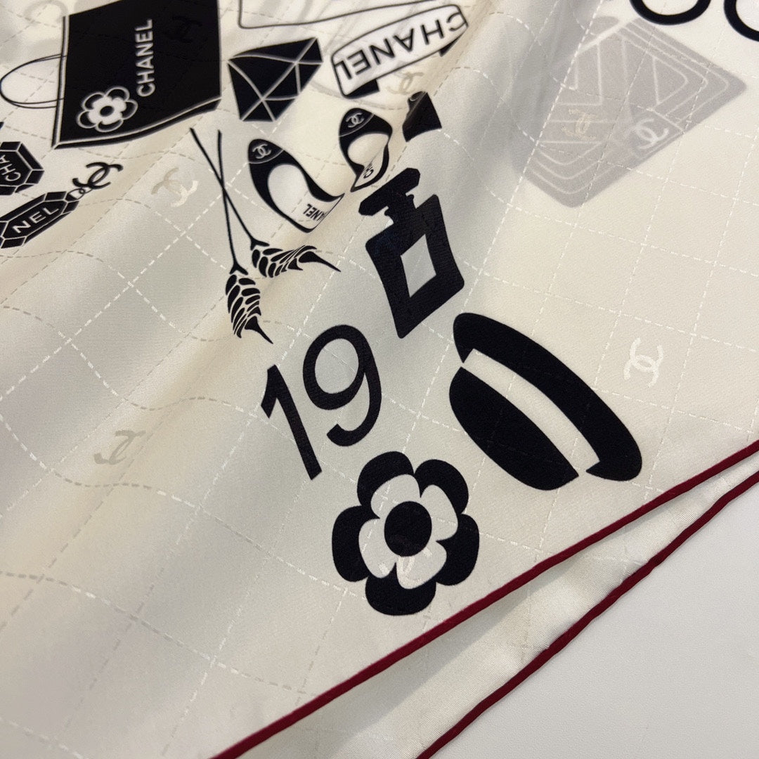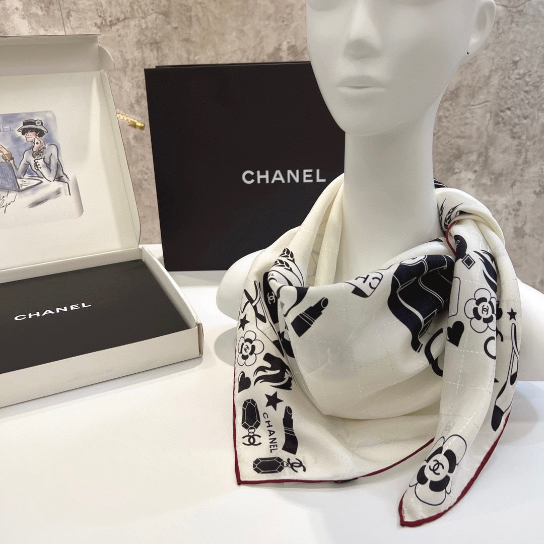 CC Square Scarf 90 CM In White Mix Black Silk 288716