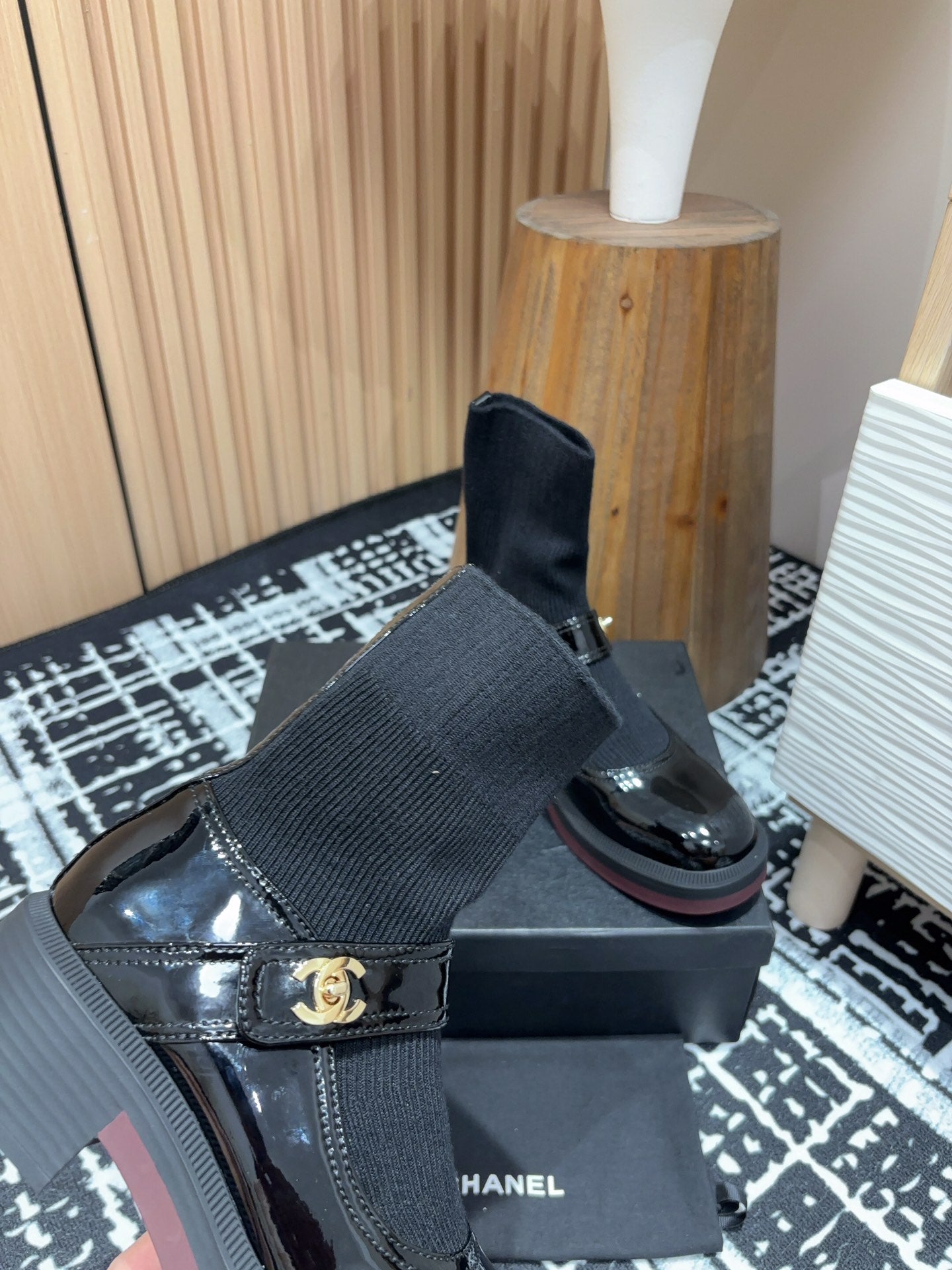 CC Ankle Boots 50mm Black Wool And Cowhide