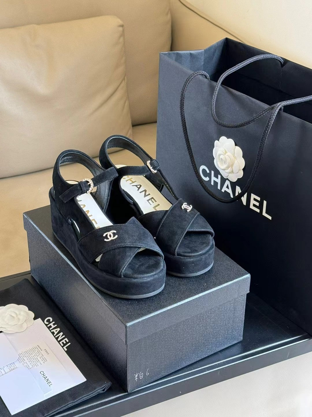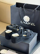CC CLASSIC WEDGE SANDALS IN BLACK LAMBSKIN SUEDE