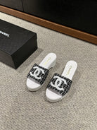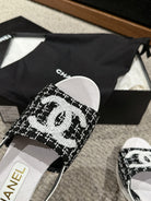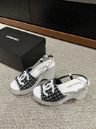 cc sandal 100 black white tweed sequin