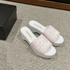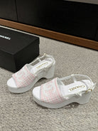 cc sandal 100 pink white tweed sequin