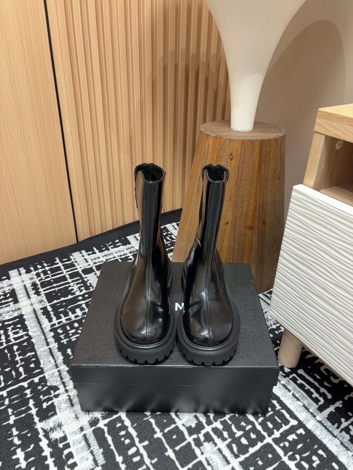 CC Short Boots 45mm Glossy Black Calfskin And Suede
