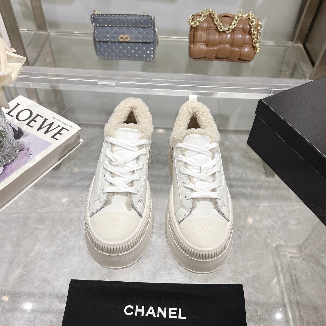 CC Sneaker White Cowhide White Wool Lining