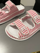 dad sandal mule striped pink white fabric calfskin