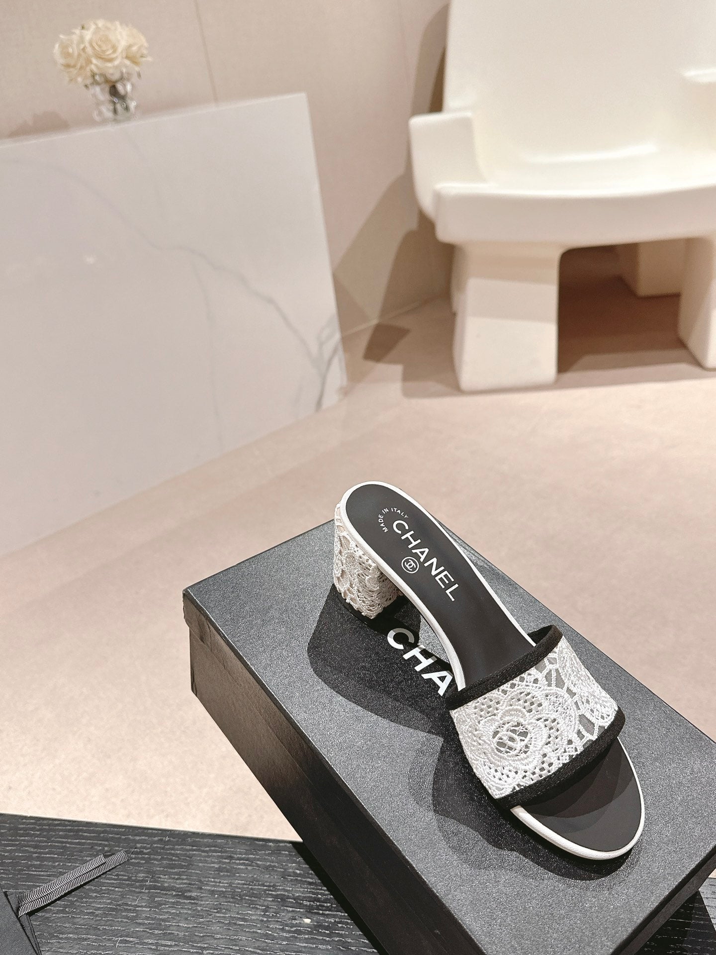 mule sandal 60 white lace fabric