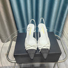 Slingback 50 White Calfskin Black Satin Pointed Toe