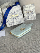 CD Logo Caro 11cm Compact Wallet Shiny Cloud Blue Calfskin
