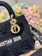 CD Flower Black 24 Lady Dior Bag Canvas 336721